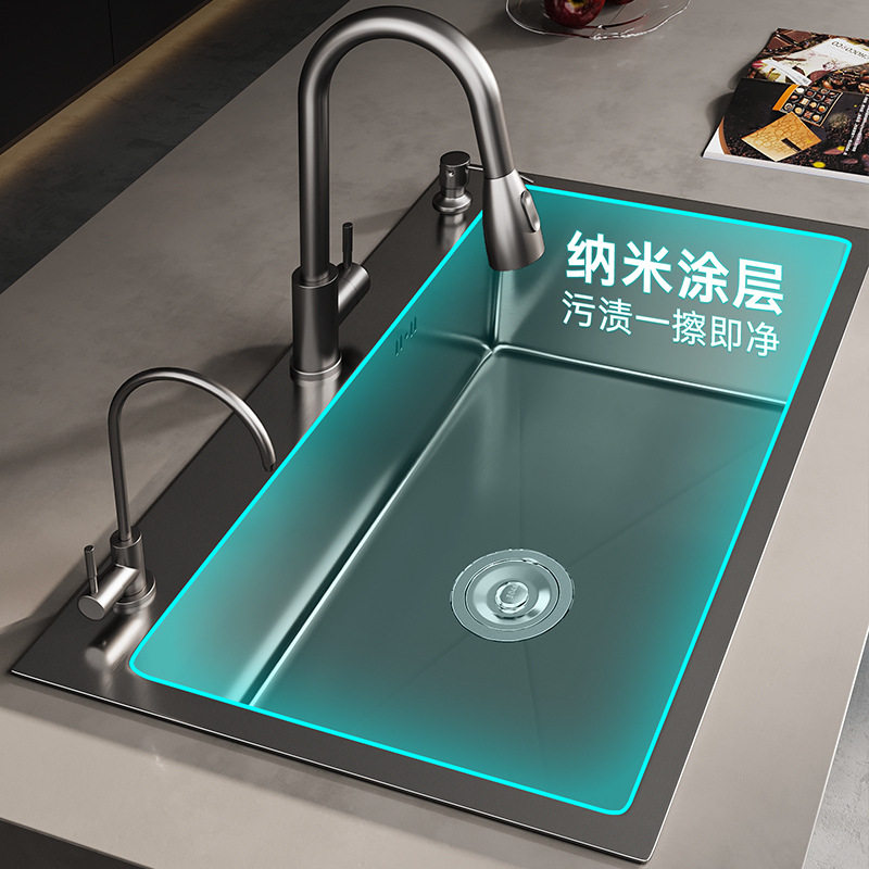 轻奢加厚手工大单槽洗菜盆不锈钢水槽厨房台下盆洗碗池洗手盆套装