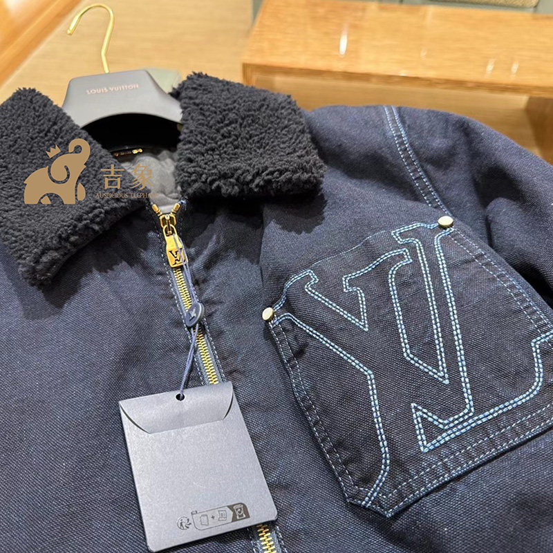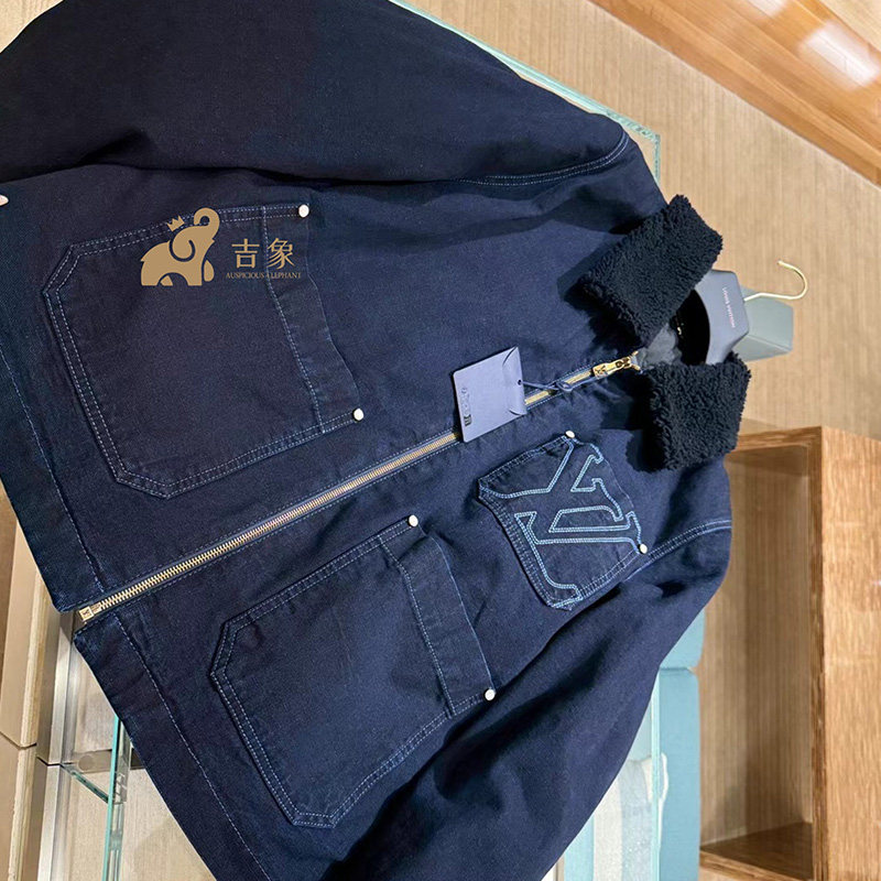 LV路易威登2025新款男装蓝色丹宁毛绒翻领牛仔工装夹克外套1AGIOC