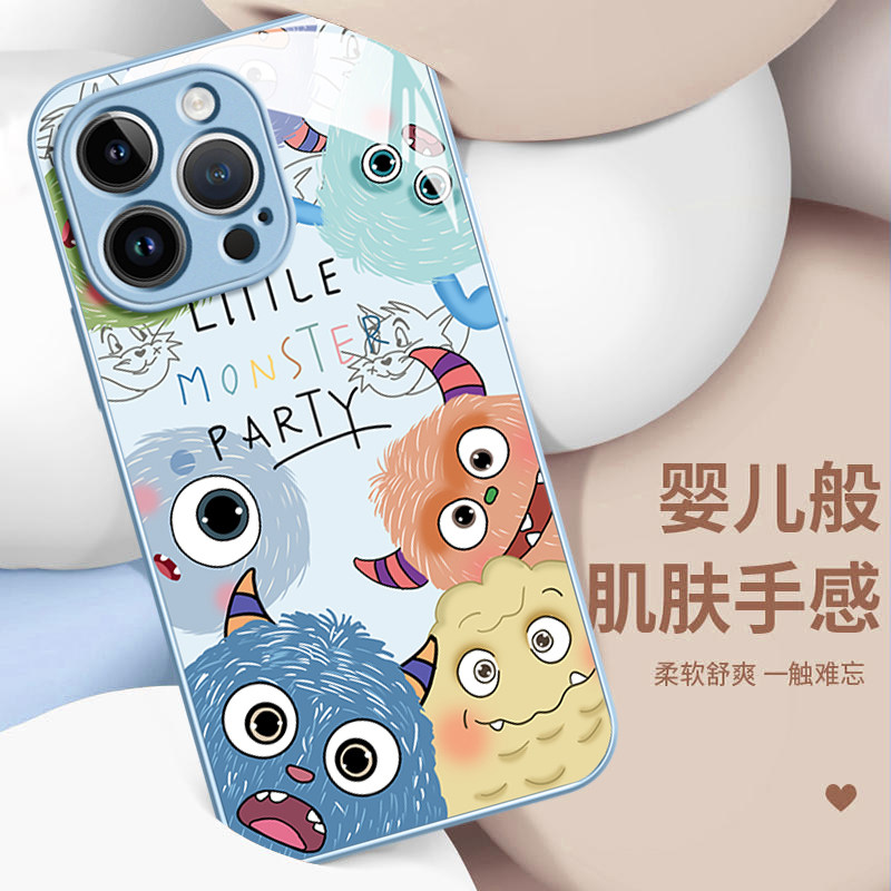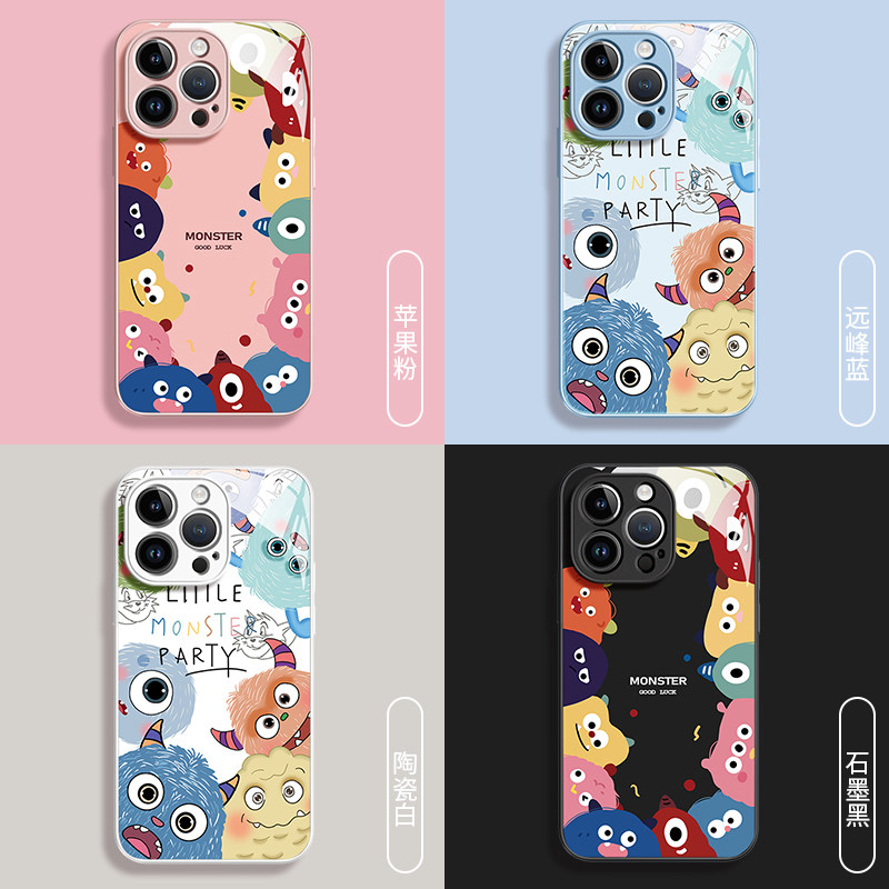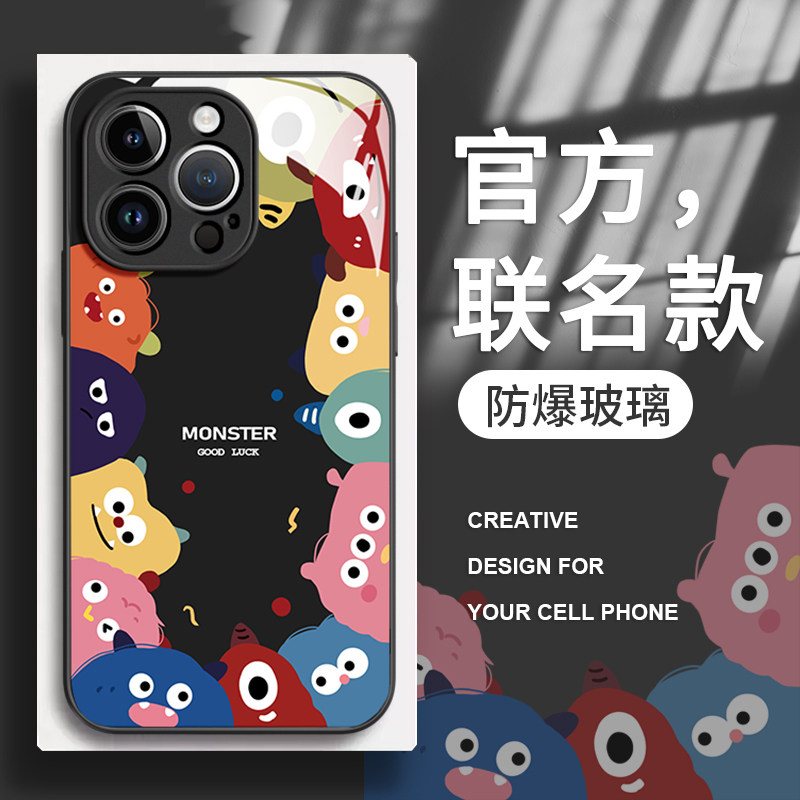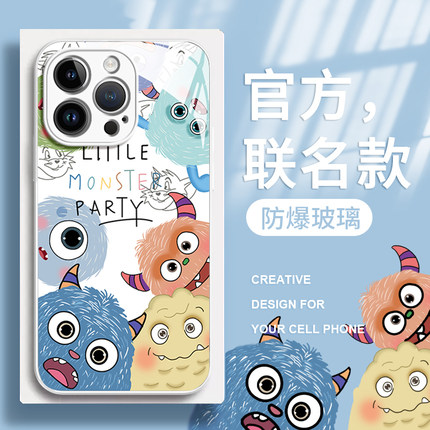 小怪兽家族适用苹果16promax手机壳新款iPhone13全包15防摔i12高级感玻璃11prom男max情侣14plus卡通mini女款
