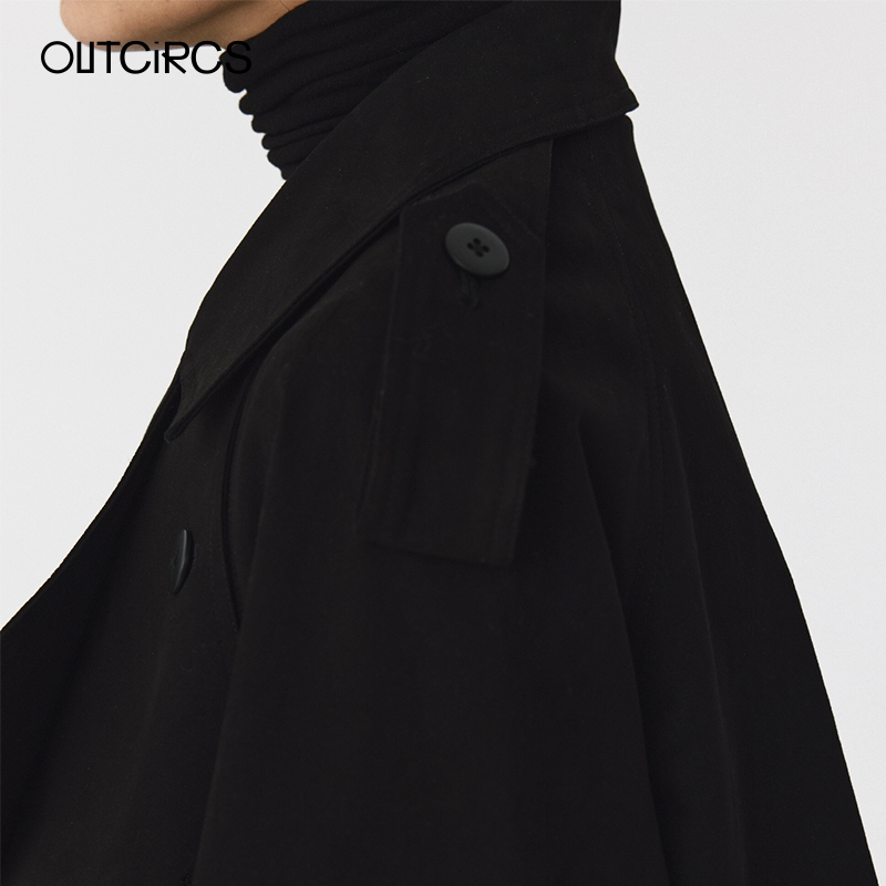 OUTCiRCS双排扣工装翻领夹克女士春季新款宽松工装风衣外套上装