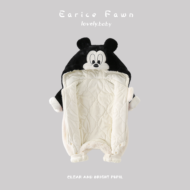 婴儿加厚加绒连体衣雪服冬装衣服新生外出爬爬服男女宝宝夹棉哈衣