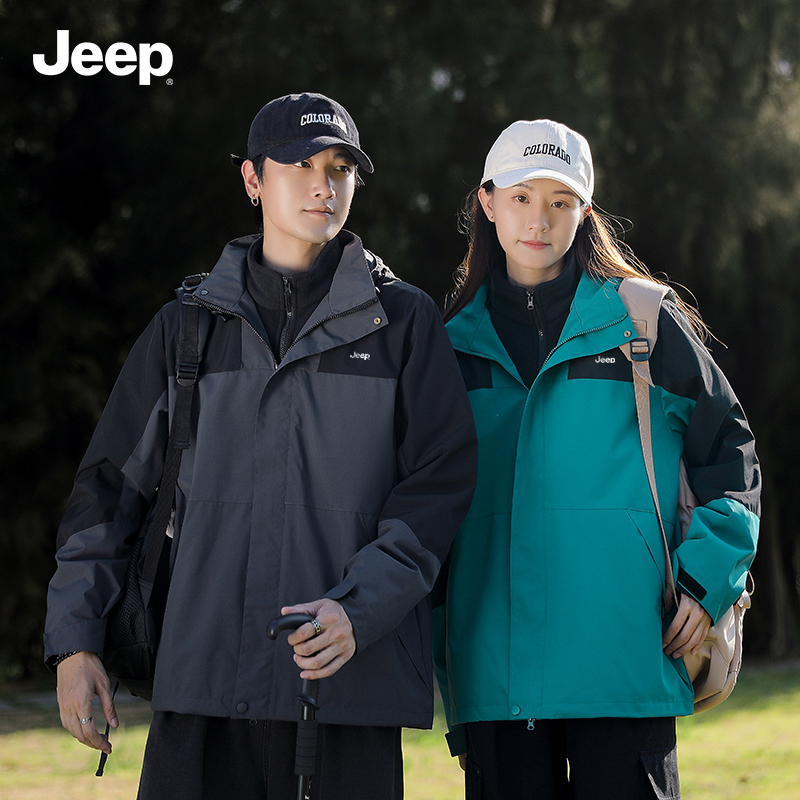 Jeep吉普官方冲锋夹克三合一男上衣2025新款防风防水登山服外套女