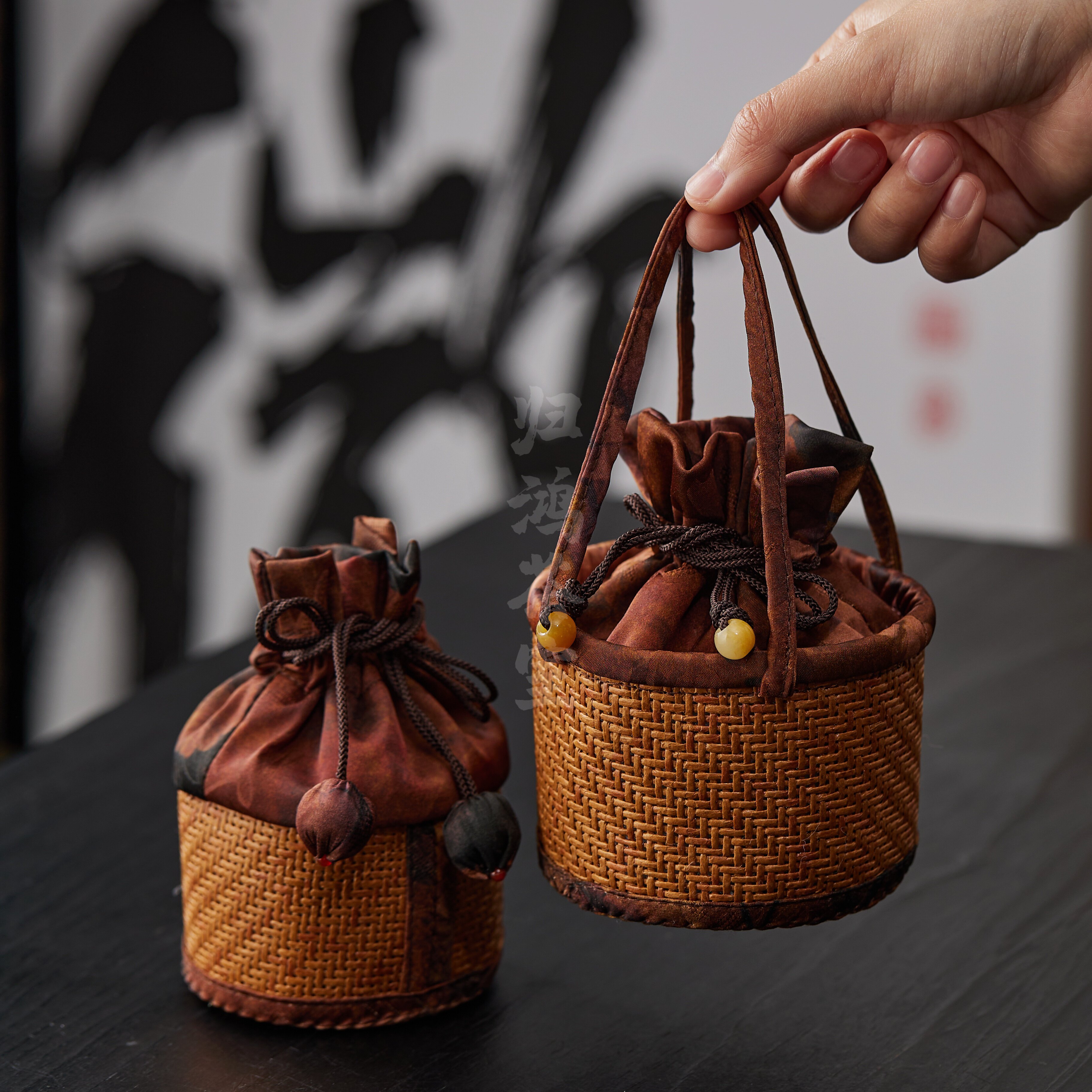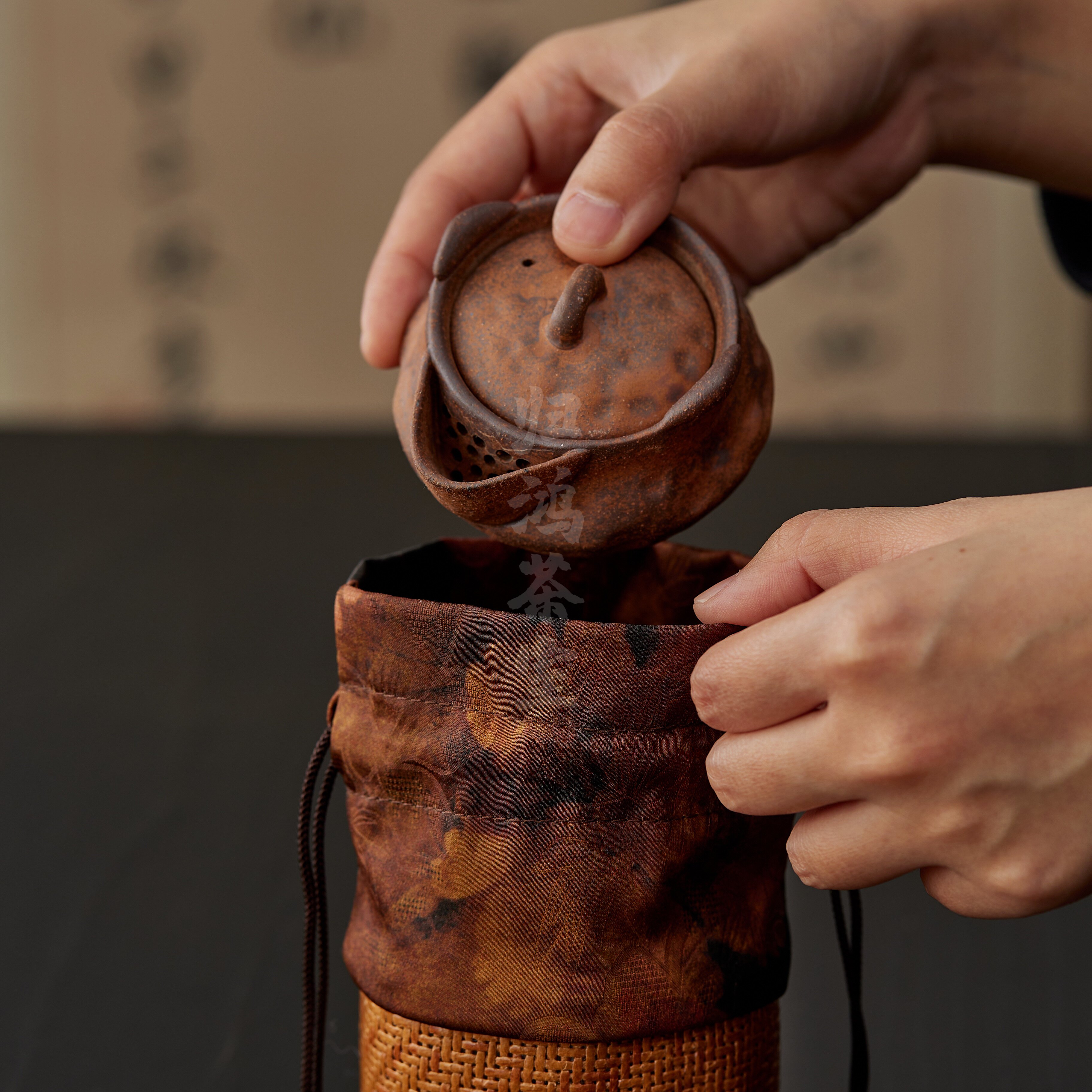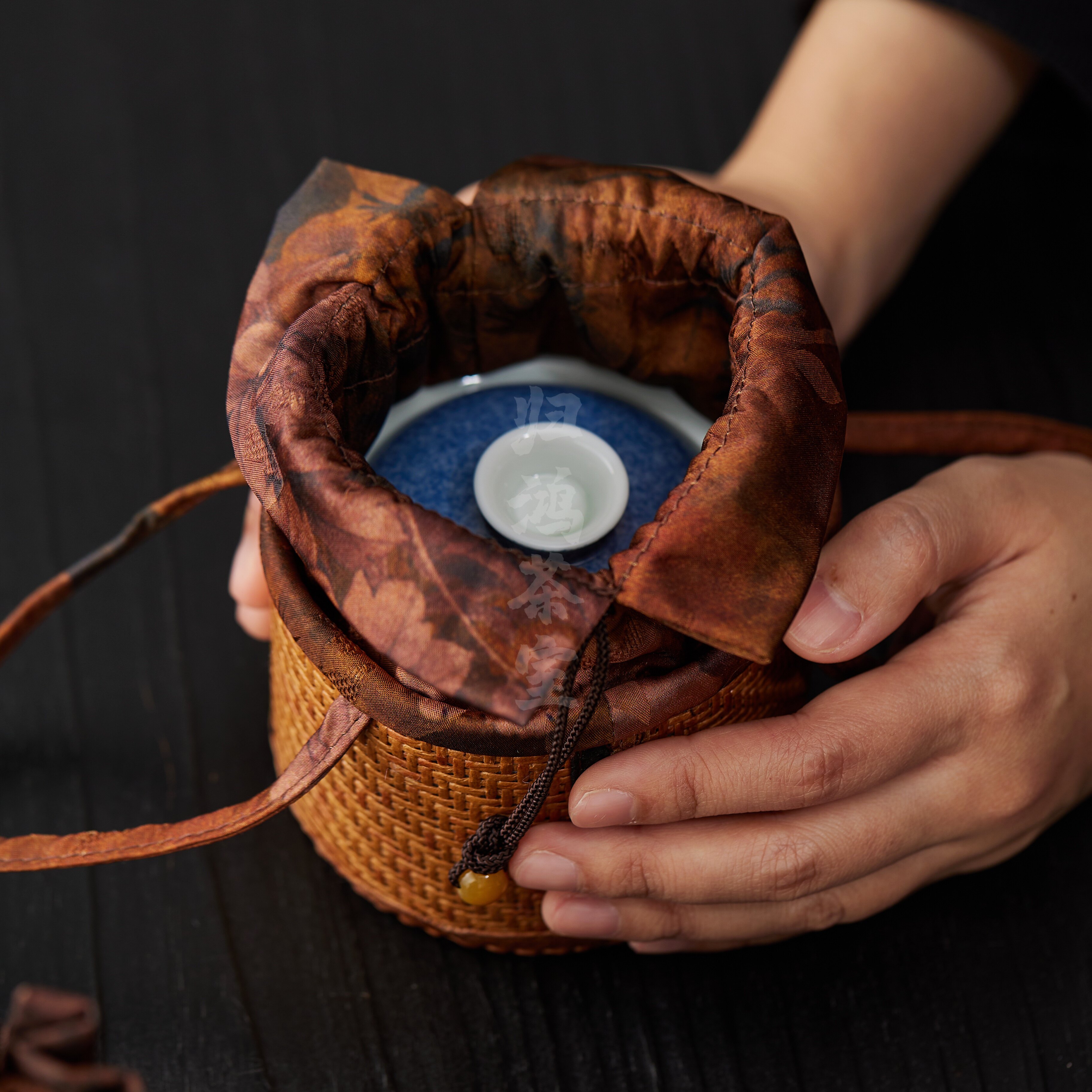 归鸿茶杯主人杯收纳袋杯袋藤编茶杯袋便携旅行茶具快客杯布袋织锦