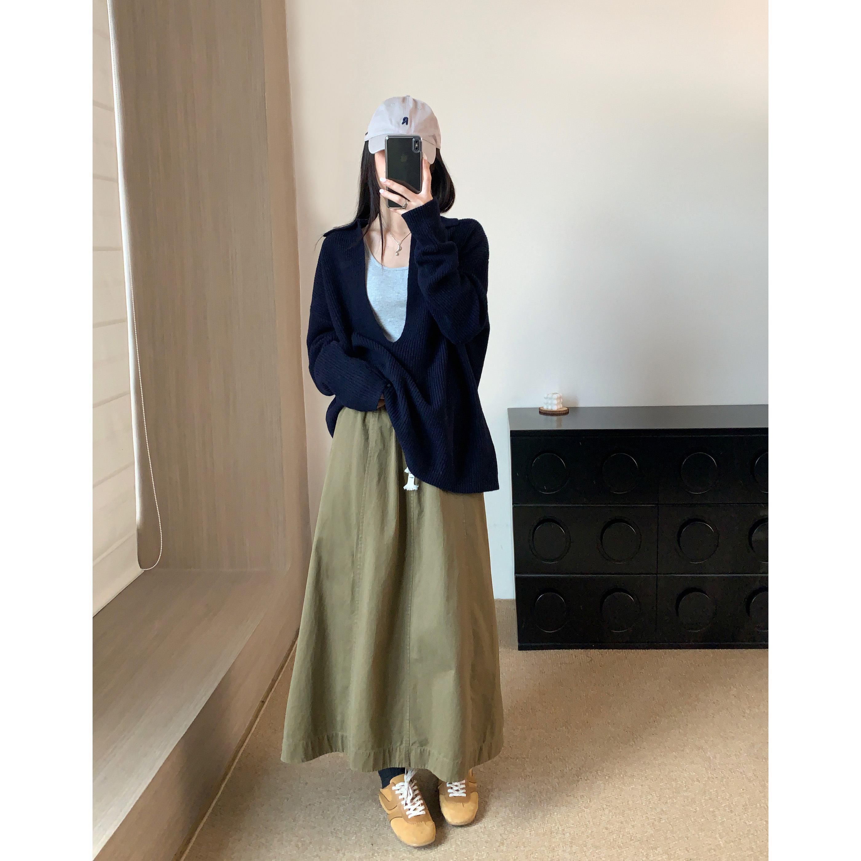HVIVI系带休闲百搭A字设计感工装半身裙美式复古中长款裙子显瘦秋
