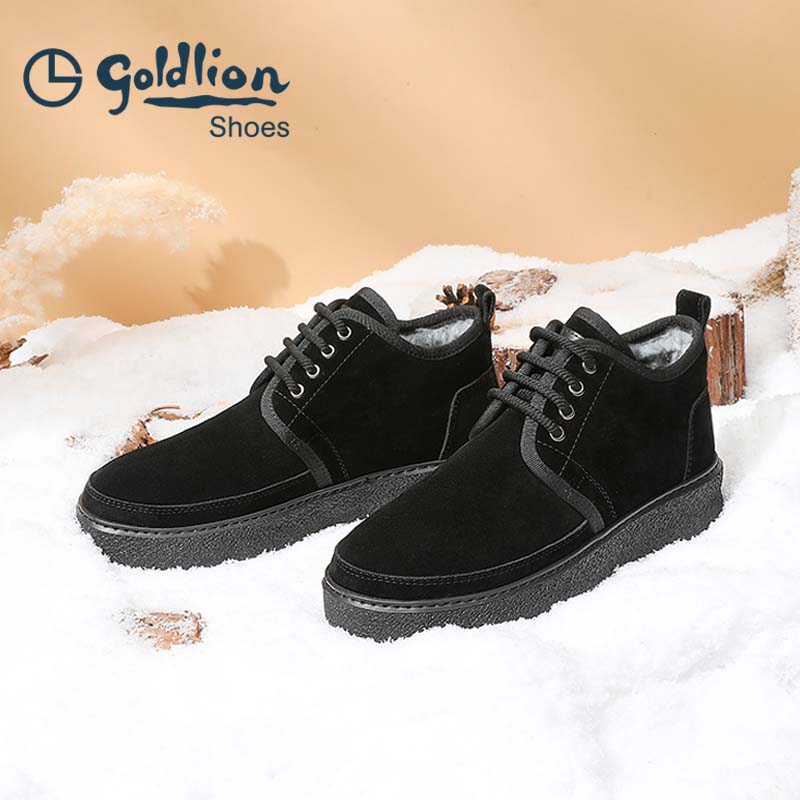 Goldlion/金利来男鞋冬季加绒羊毛厚底棉靴鞋休闲户外靴马丁靴男
