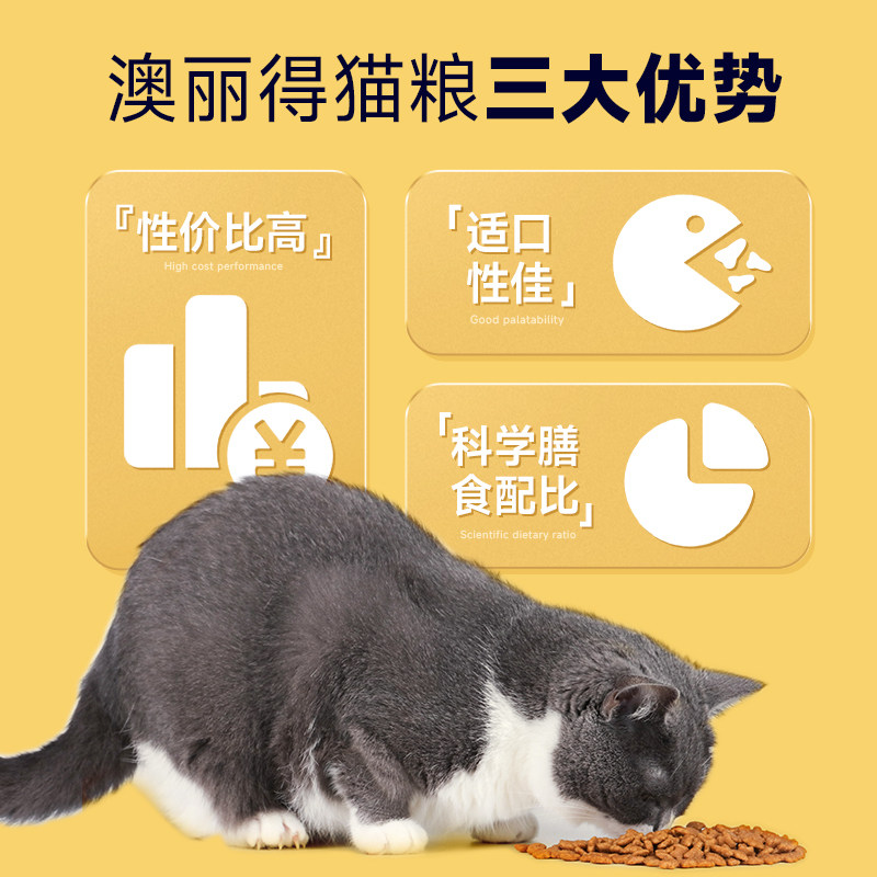 雷米高澳丽得猫粮成猫幼猫专用海洋鱼味美短整袋小包装猫咪20斤装
