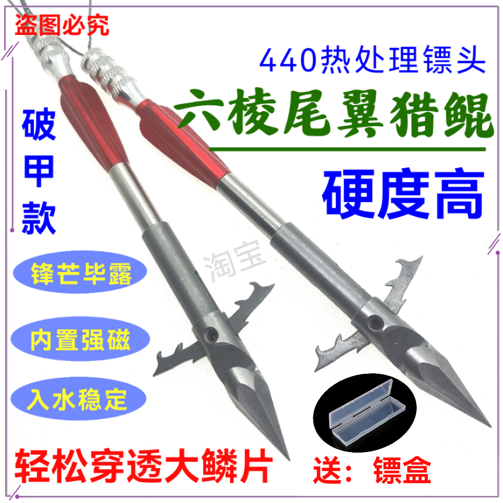 升级六棱猎鲲鱼镖440C大倒刺射鱼镖打鱼镖深水重型破甲鱼镖带尾翼