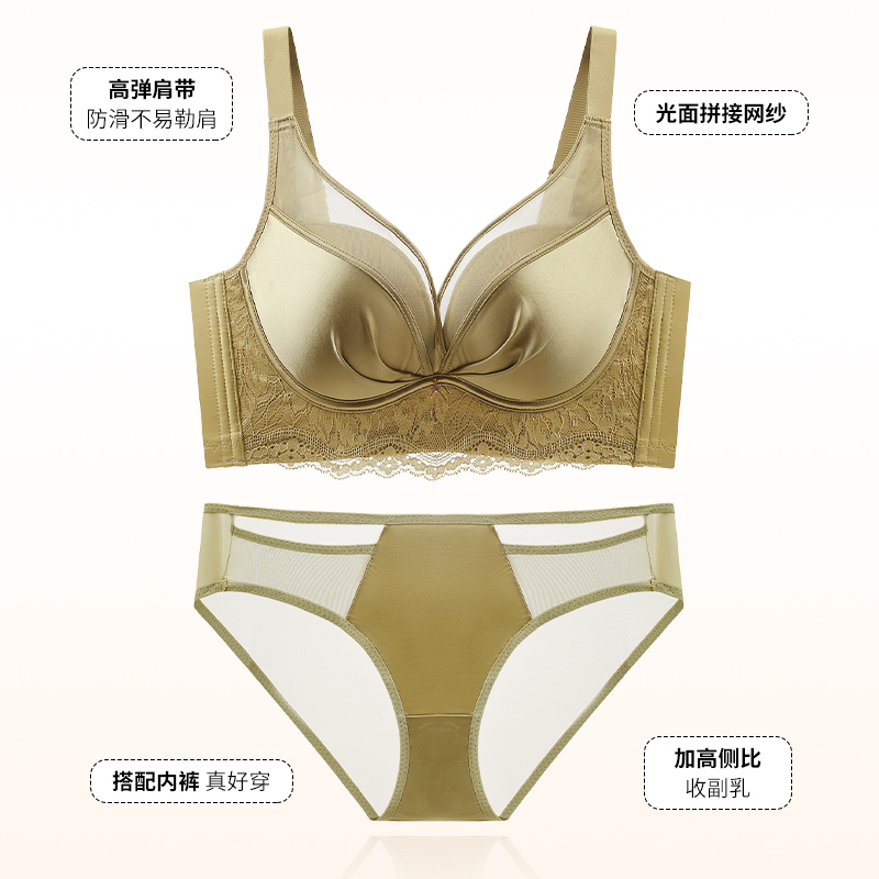 桑蚕丝内衣女小胸聚拢显大调整收副乳防下垂上托无钢圈蕾丝文胸罩