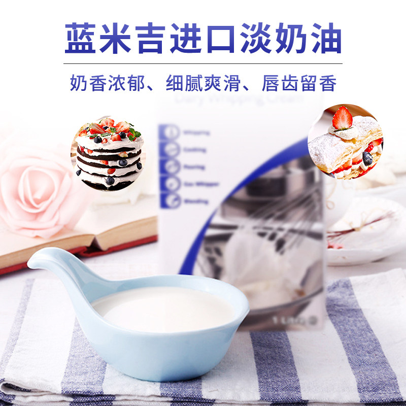 英国进口蓝米吉蓝风车淡奶油脂肪含量38%蛋糕动物裱花奶油1Lx6瓶