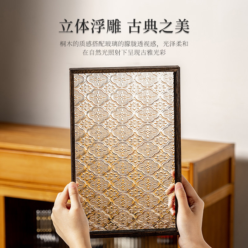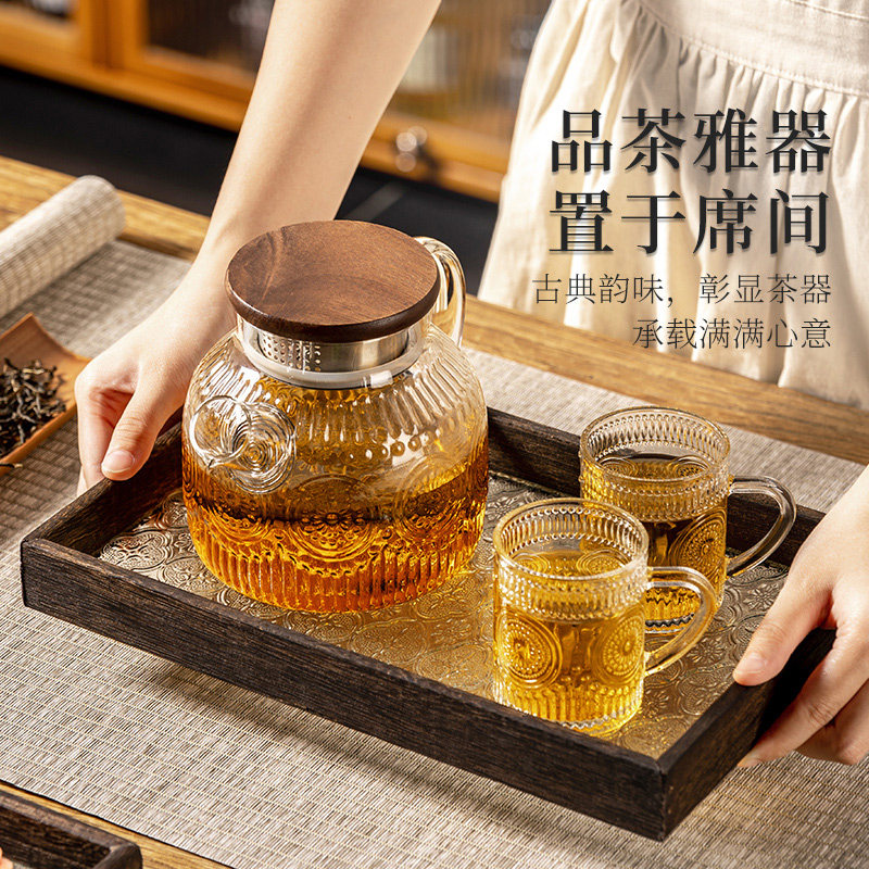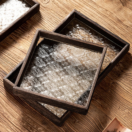 复古海棠花玻璃托盘长方形家用木质茶具水杯子点心果盘咖啡早餐盘