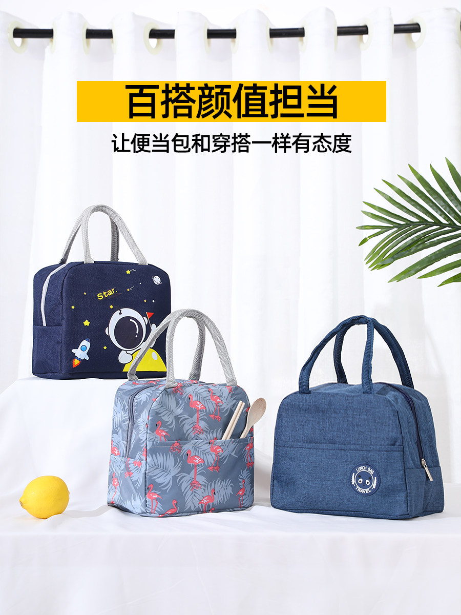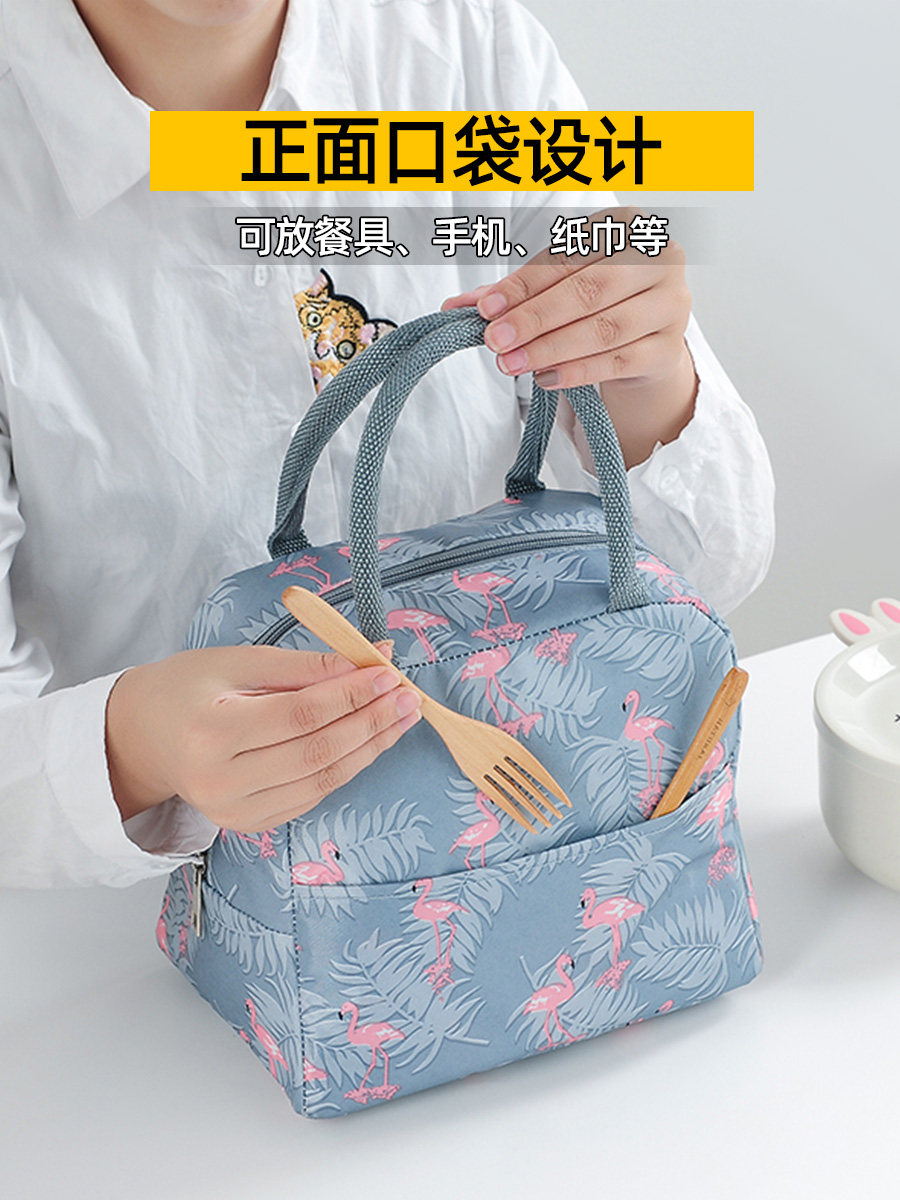 日系手提保温袋学生带饭餐盒便当