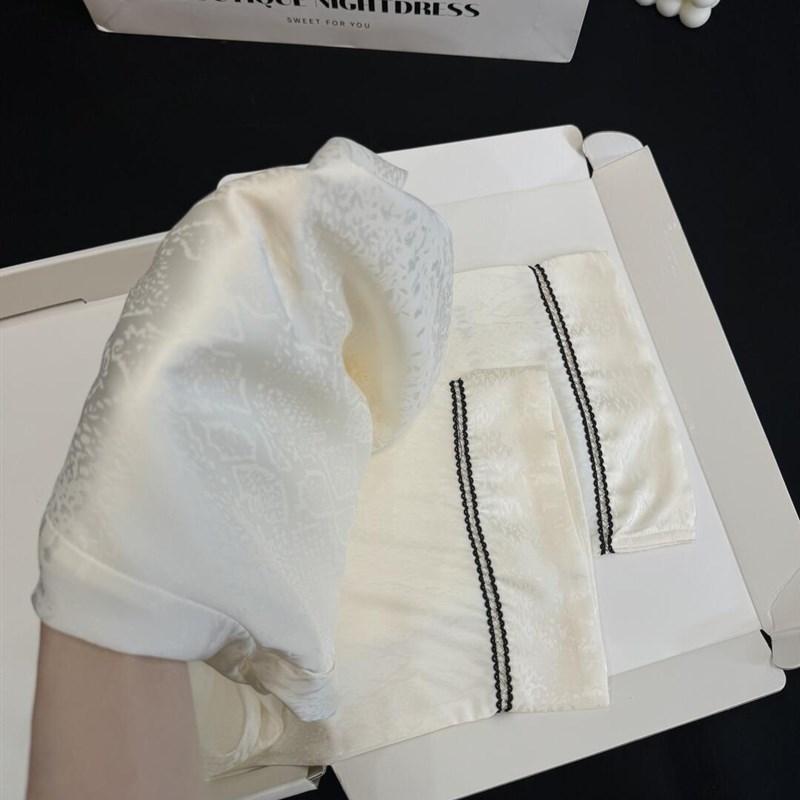 WEI TING牛奶丝缎面冰丝睡衣女春秋季新款提花烫钻丝绸家居服套装