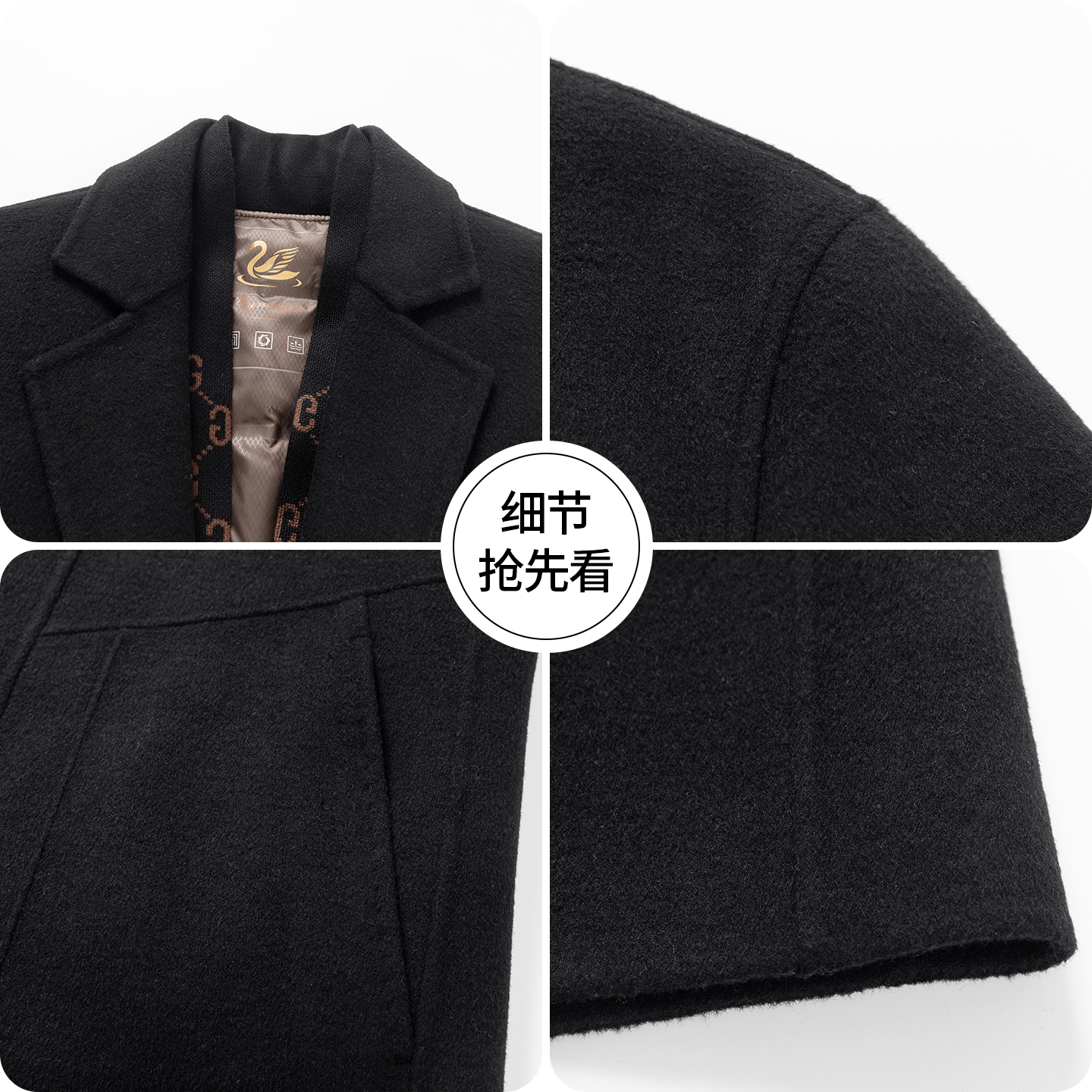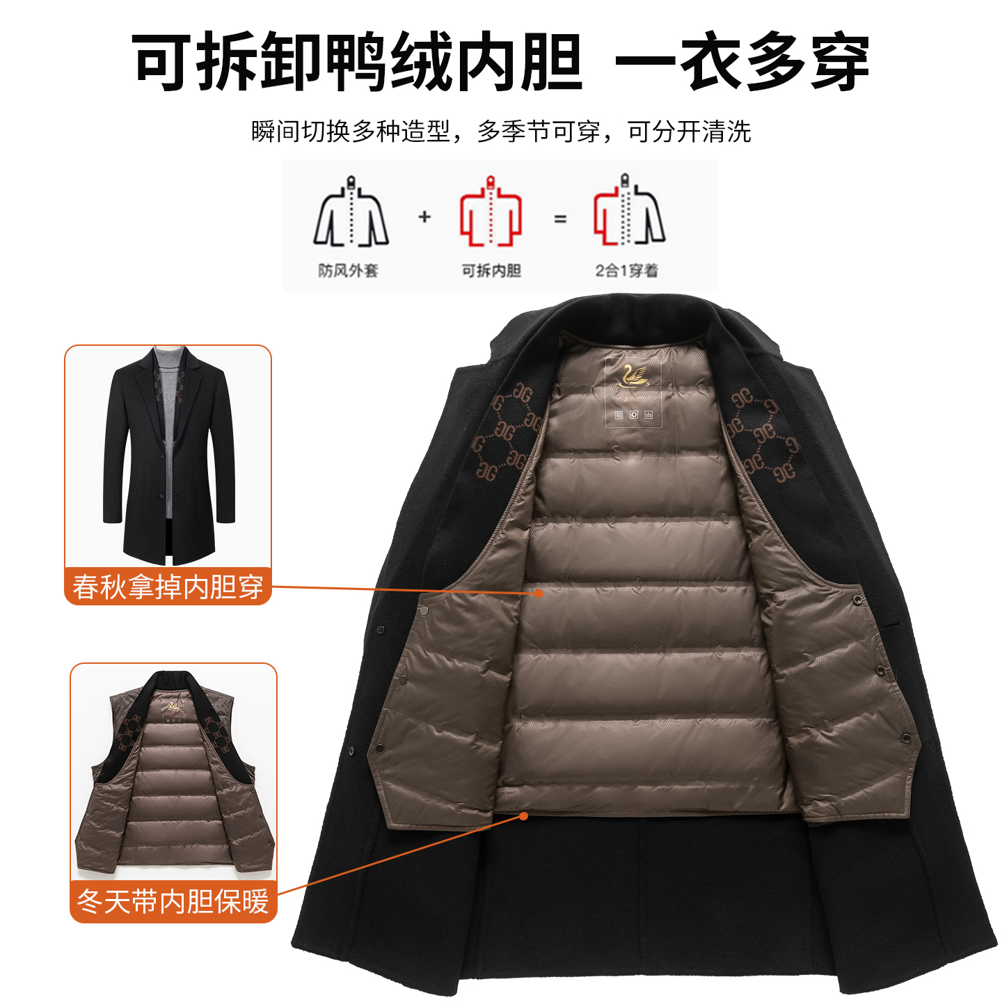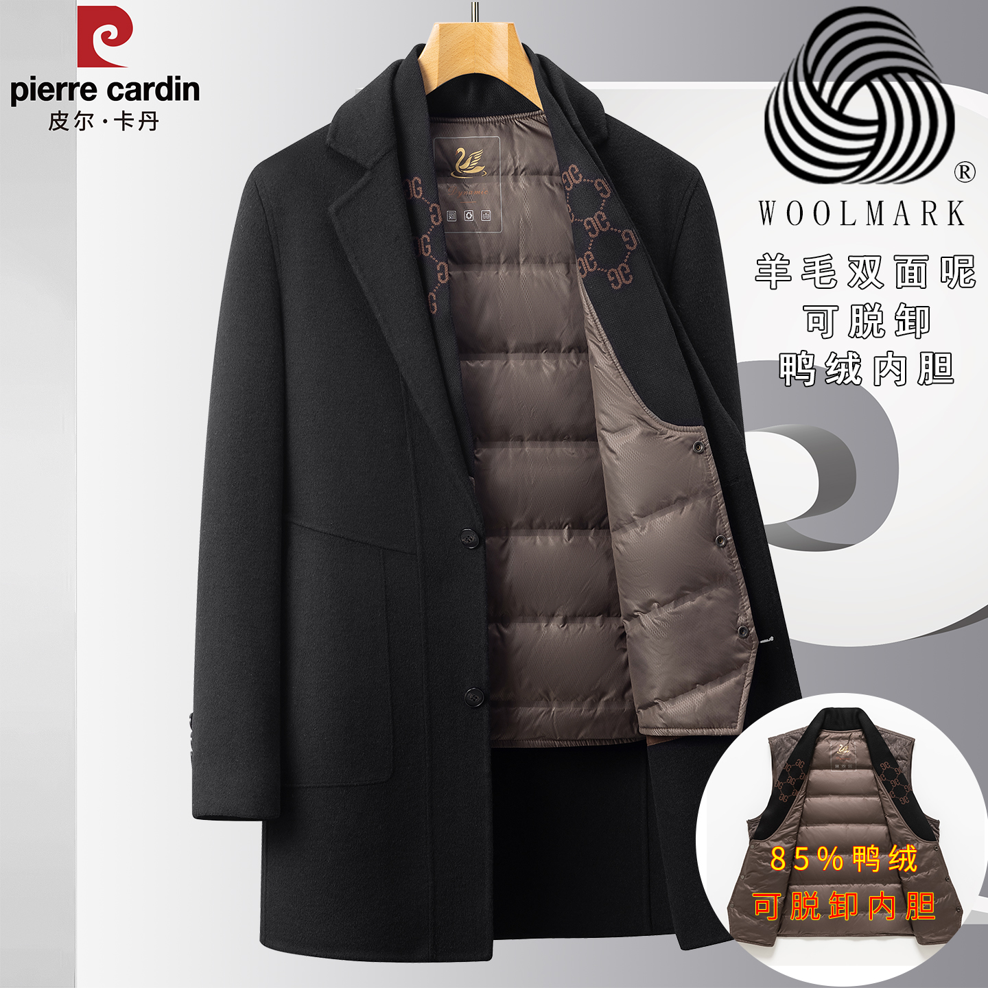 皮尔卡丹中长款羊毛呢大衣男冬季高级感2025新款中老年可脱卸内胆