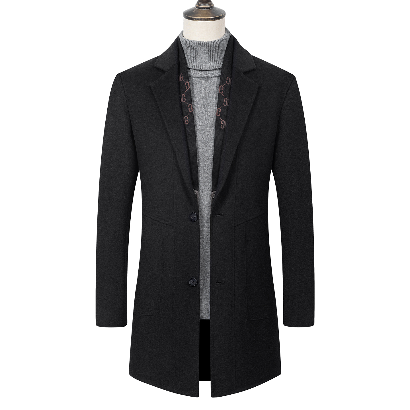 皮尔卡丹中长款羊毛呢大衣男冬季