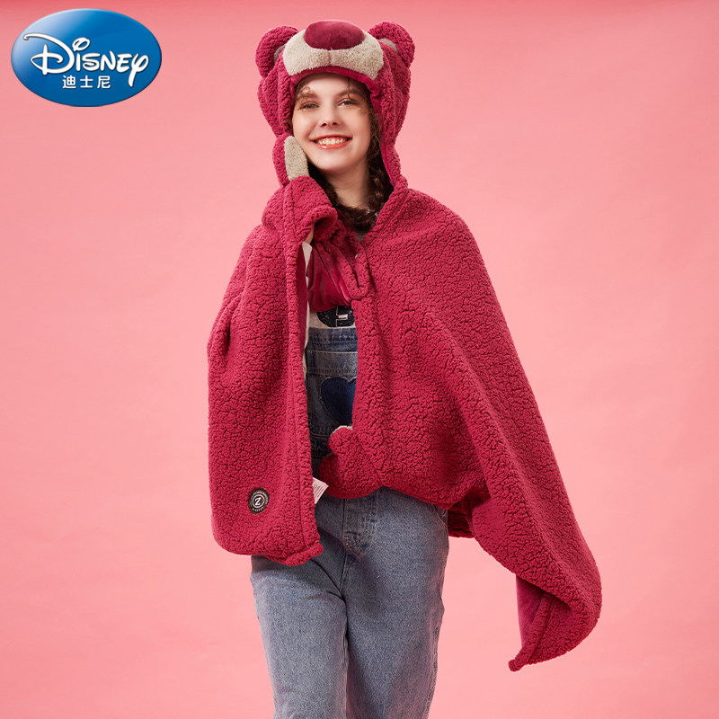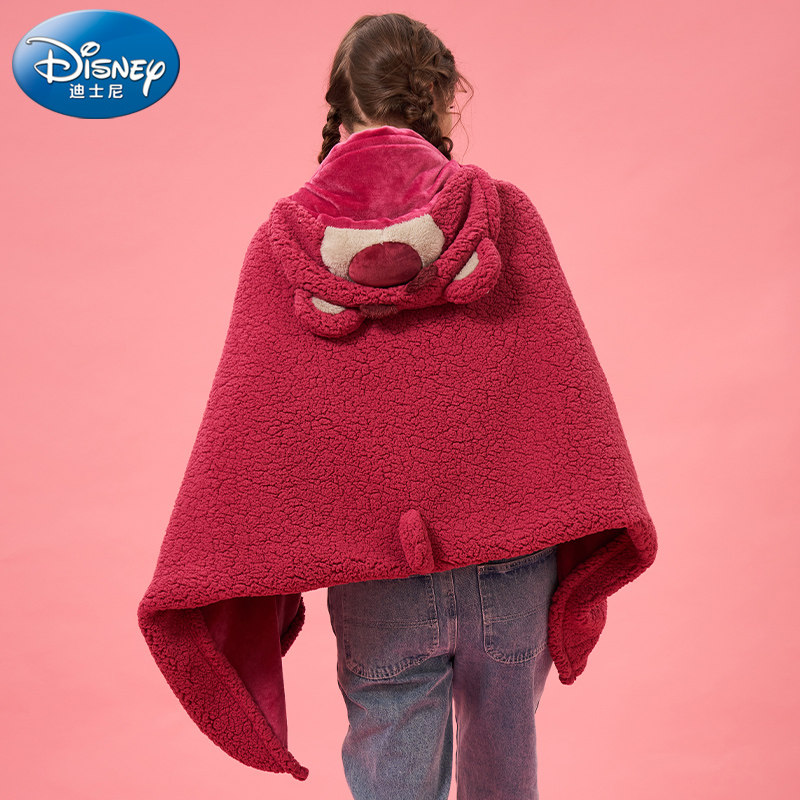 迪士尼草莓熊披风披肩毯斗篷带手掌加厚毛毯女孩保暖礼物圣诞新年