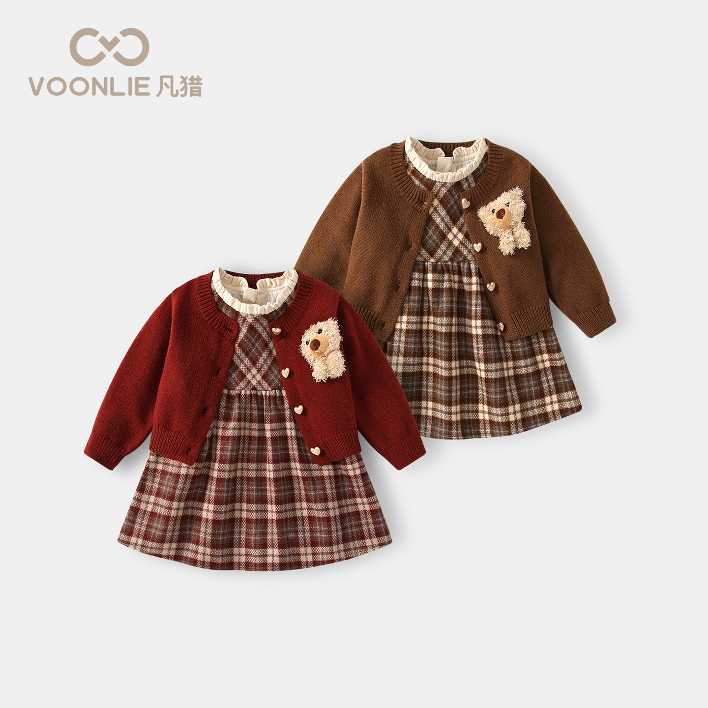 凡猎女童连衣裙秋装洋气时髦儿童公主裙开衫套装周岁宝宝礼服春秋