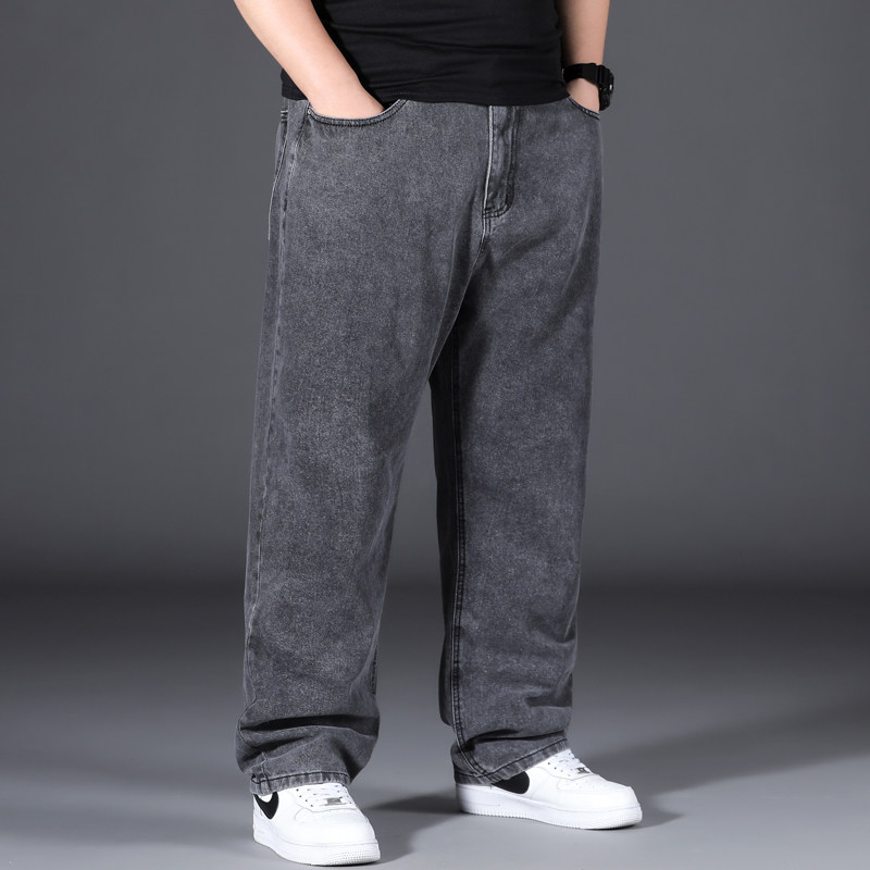 秋冬款牛仔裤男宽松直筒胖子肥佬加肥加大码长裤子运动裤百搭阔腿