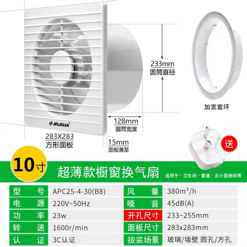 金羚排气扇6寸家用卫生间墙壁圆气扇抽风机形玻璃窗8寸静音强力换