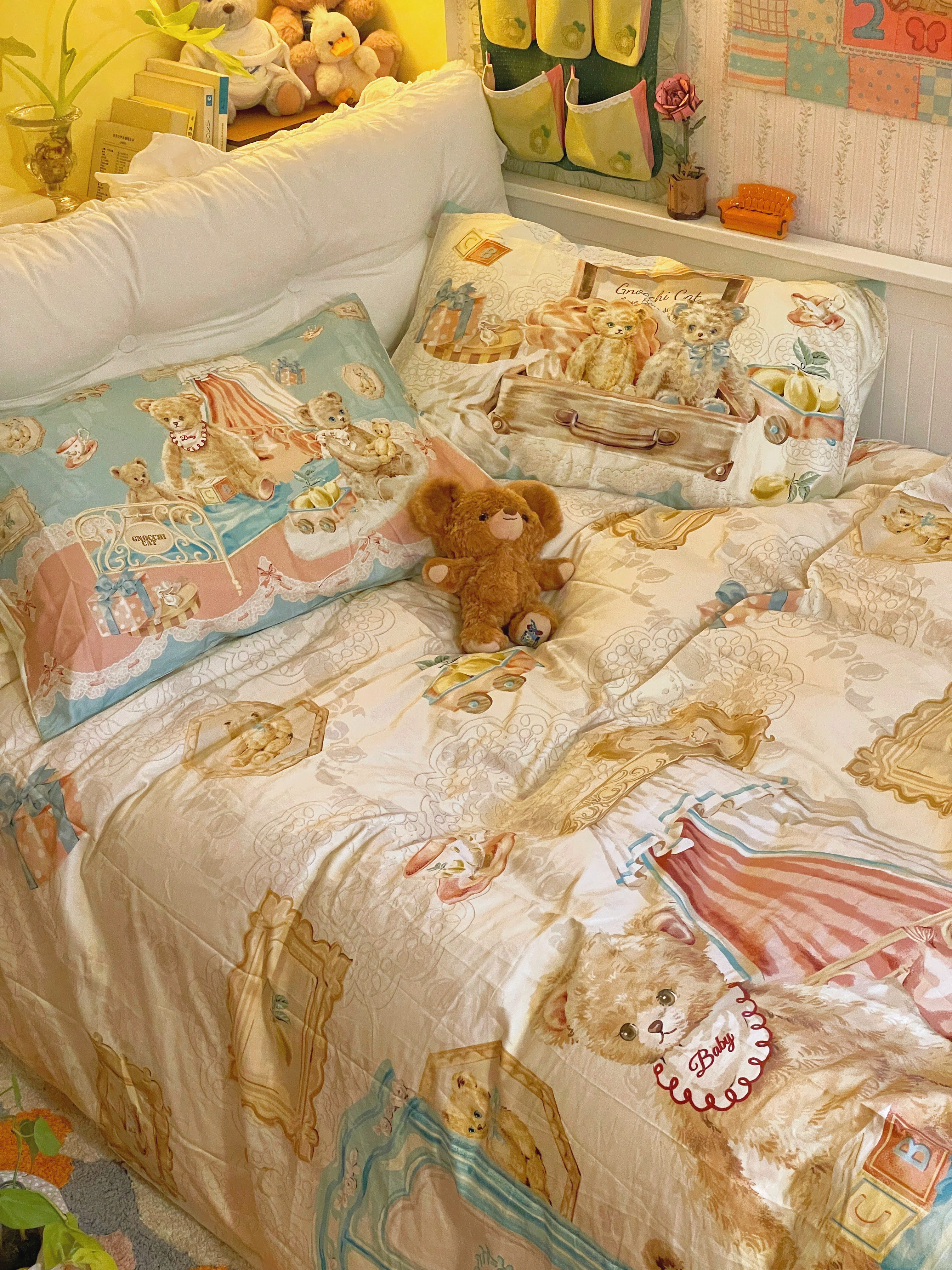 兔熊派对-60支长绒棉贡缎四件套 原创小熊玩偶床品学生全棉被套