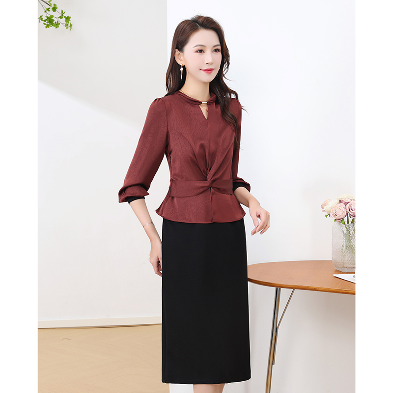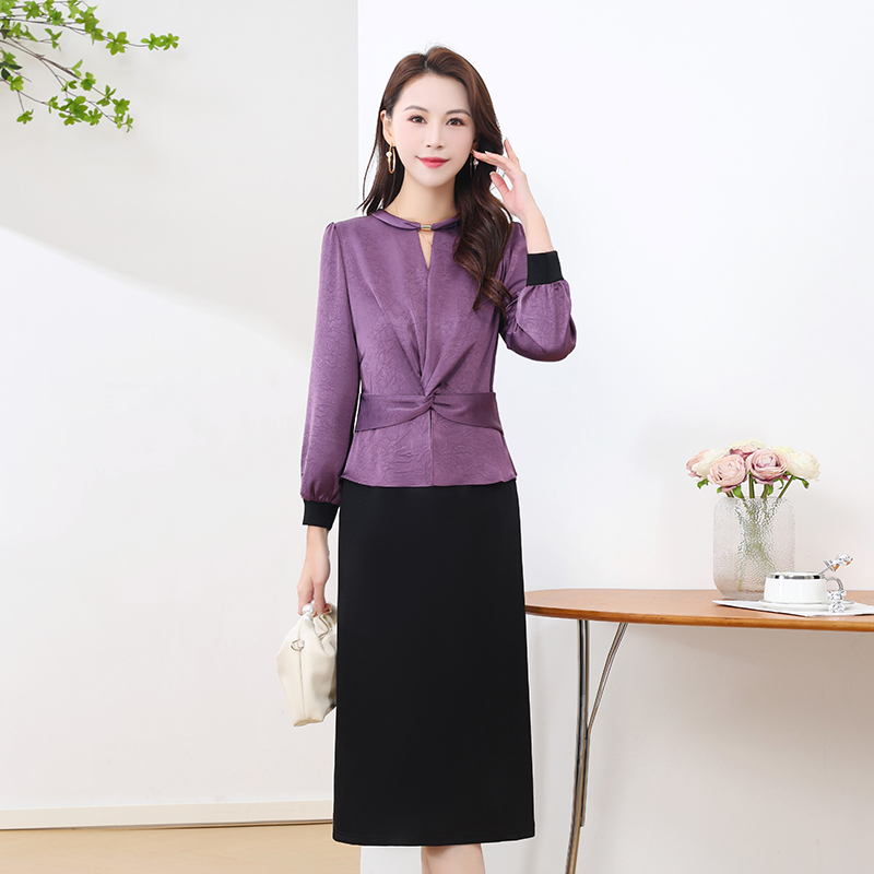 2025春秋新款小香风圆领长袖连衣裙女中长款修身收腰OL假两件裙子
