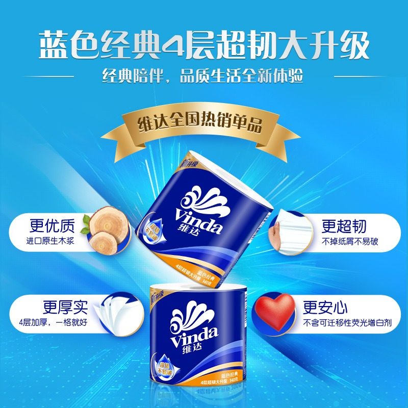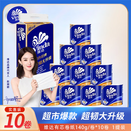 维达有芯卷纸4层140克10卷家用加厚卫生纸巾厕纸卷筒纸实惠装手纸