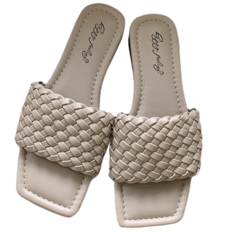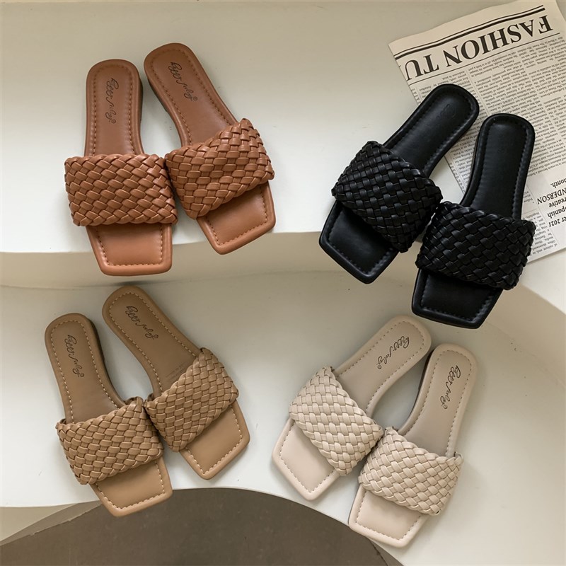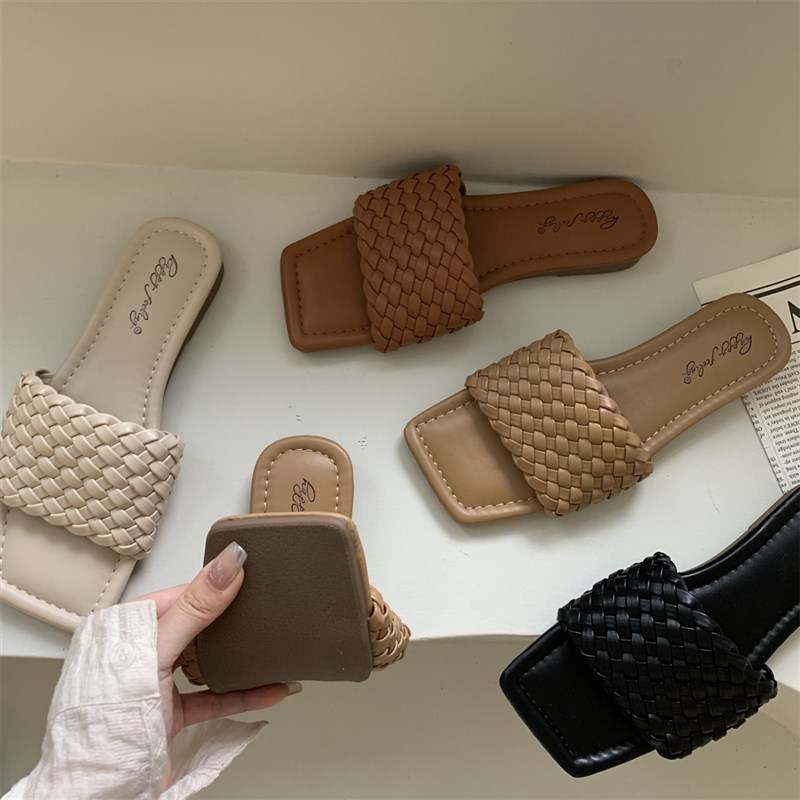 推荐~编织沙滩凉拖鞋女方头夏季外穿平底法式小众高级感拖鞋凉鞋