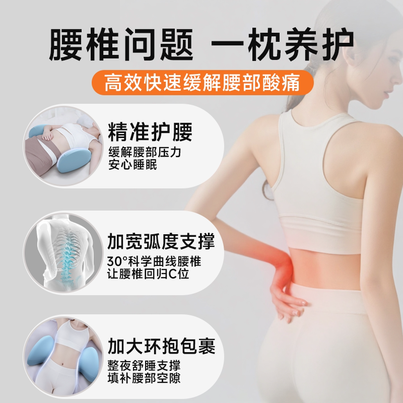 腰枕睡觉专用腰椎间盘突出腰部支撑腰靠腰垫腰托床上平躺睡觉专用