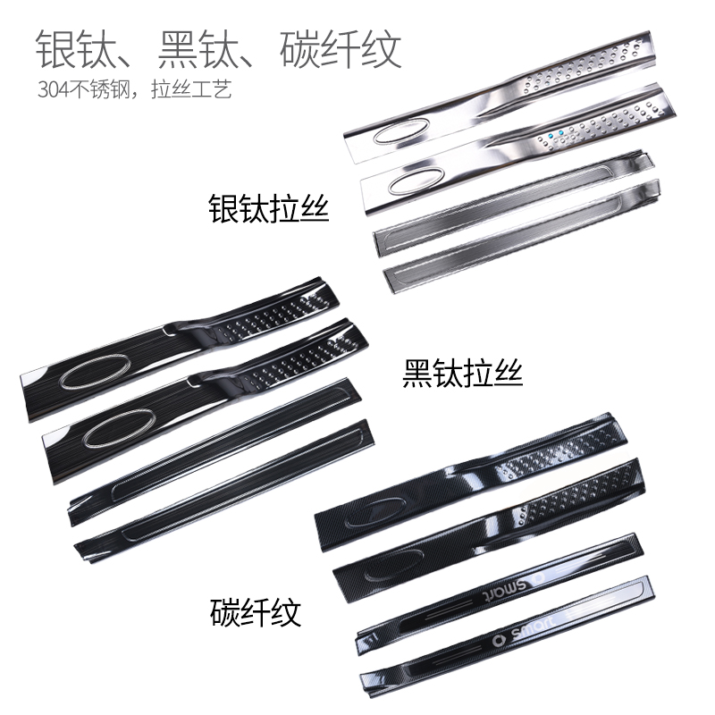 适用奔驰smart改装车门迎宾踏板装饰贴不锈钢门槛条2门内外脚踏板