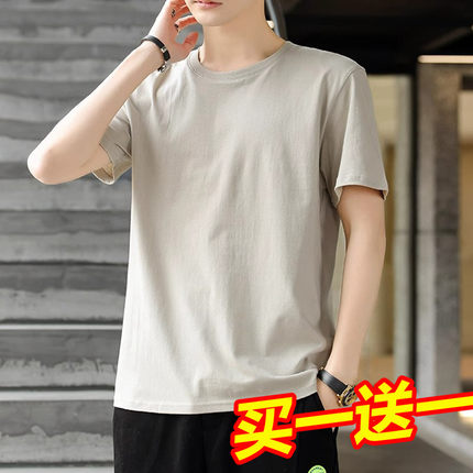Yishion以纯纯棉短袖t恤男士2025夏季薄款潮流INS卡其色休百搭半