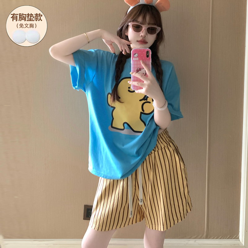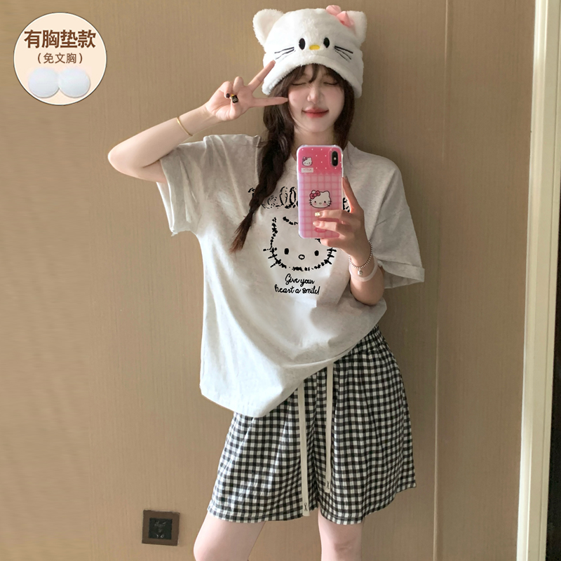 KT猫睡衣女款夏带胸垫短袖短裤2025新款纯棉网红款套装可爱家居服