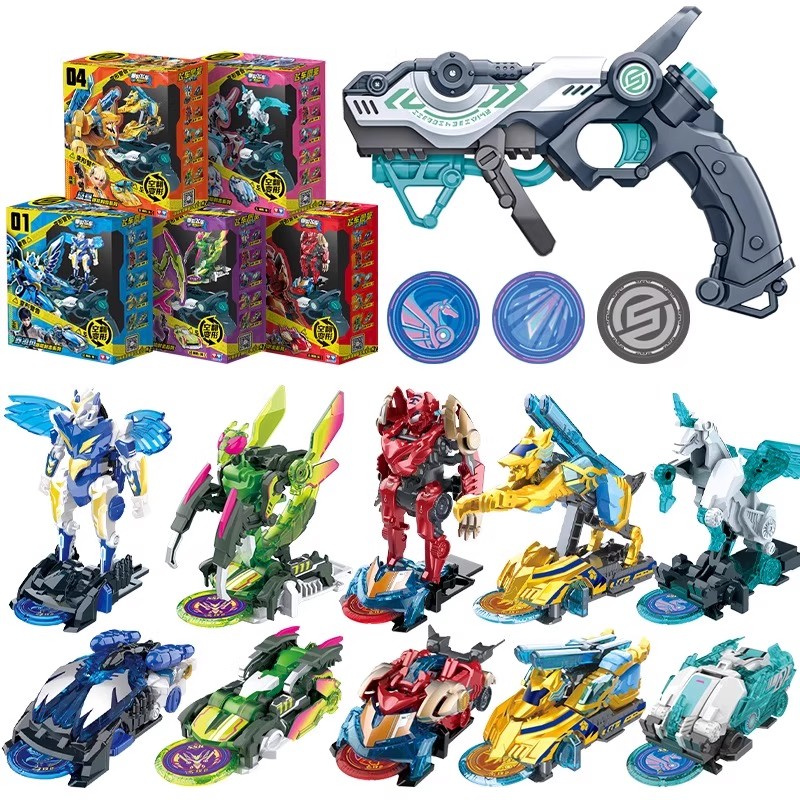 奥迪双钻爆裂飞车5晶码迷踪炫酷夺晶弹射360空翻车枪套装变形玩具