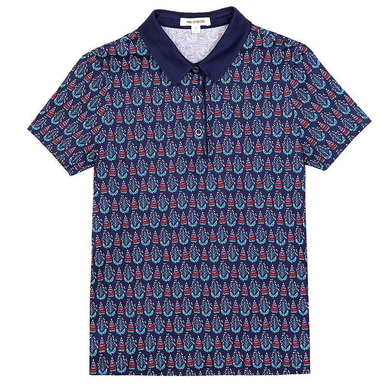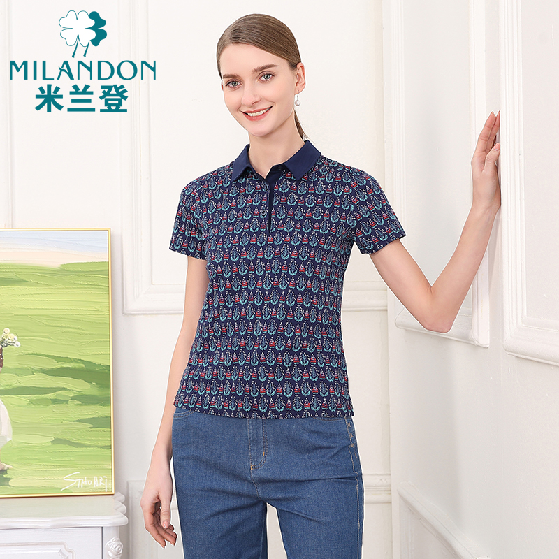 米兰登纯棉翻领印花中老年妈妈装