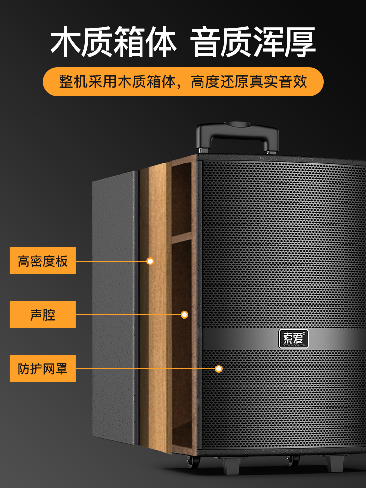 索爱三分频户外拉杆音响