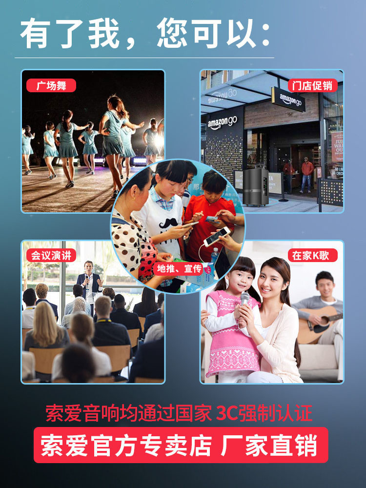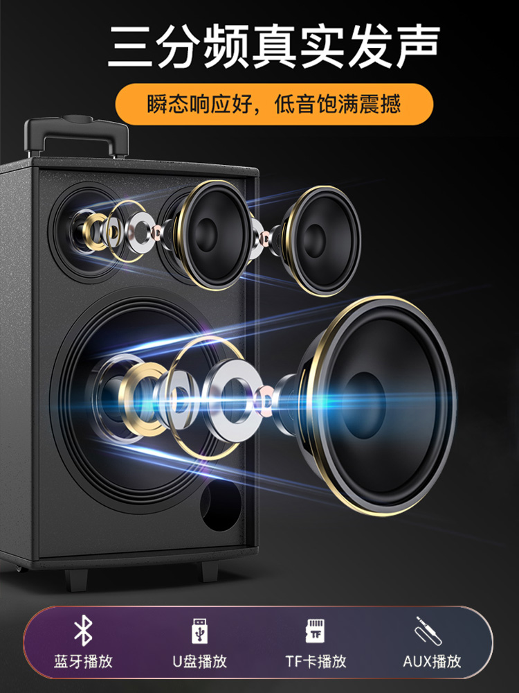 索爱三分频广场舞移动拉杆音箱大功率演出K歌便携蓝牙户外音响