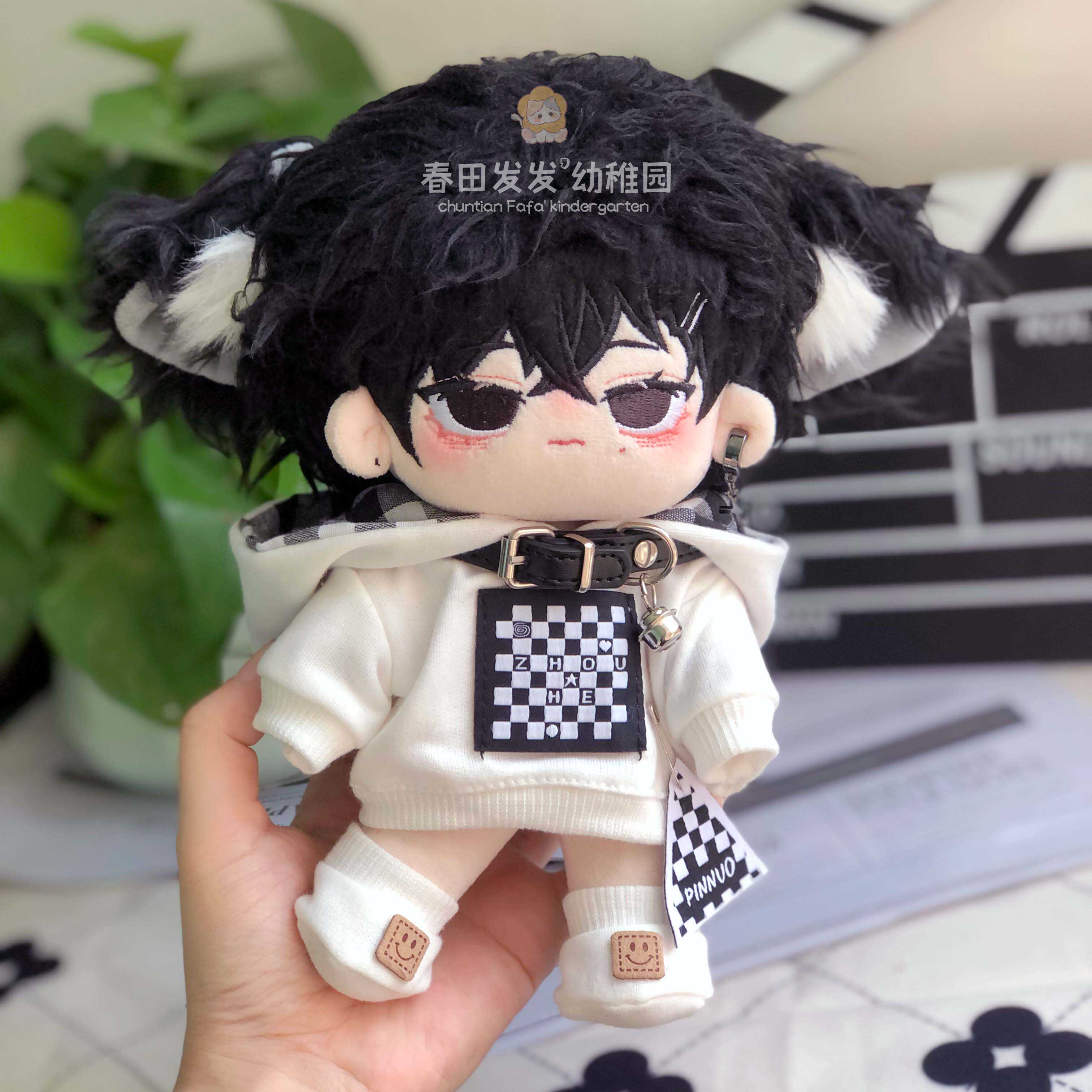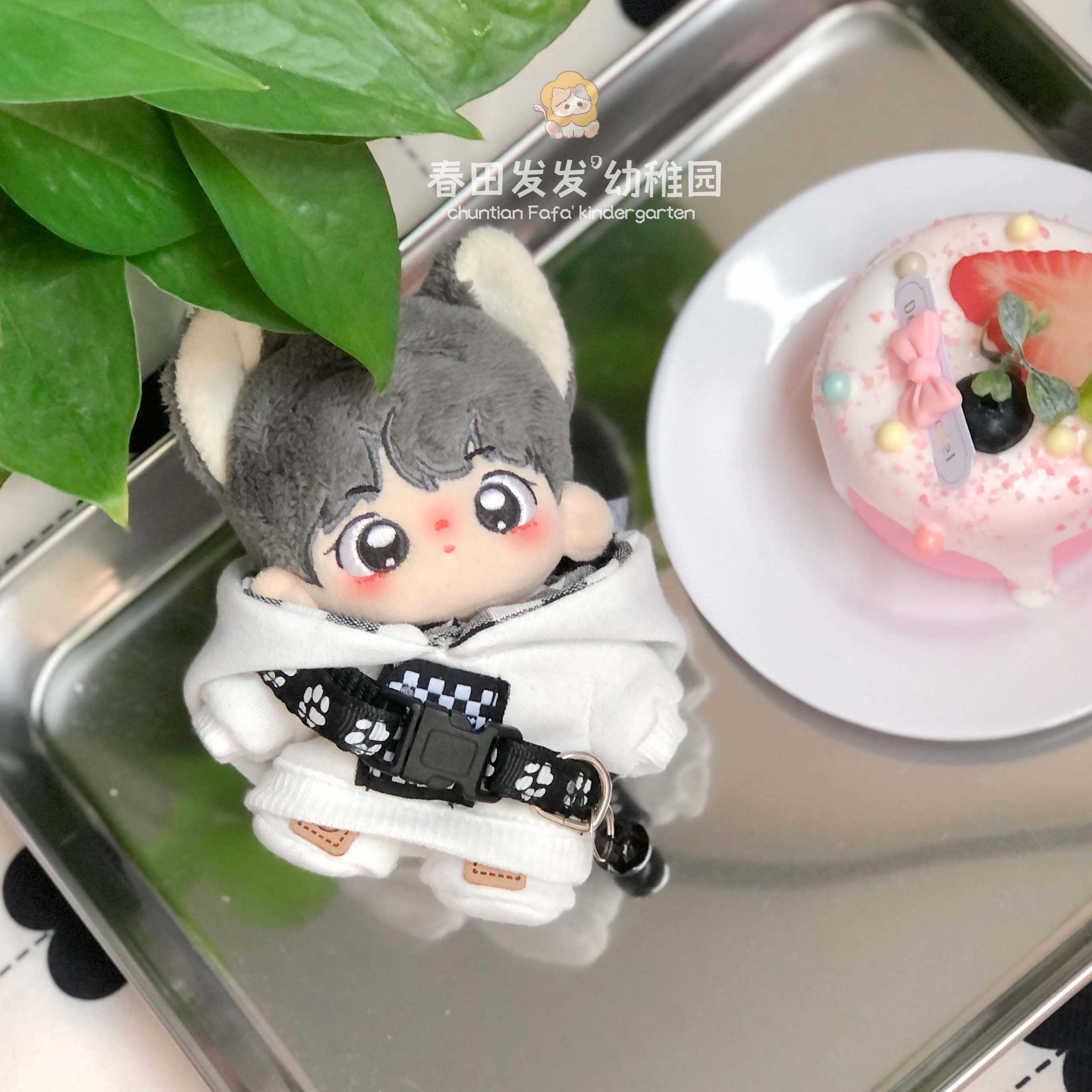 现货20cm娃衣炫酷街头风连帽卫衣鞋袜10cm套装毛绒玩具项圈配饰