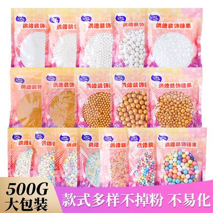 糖珠500g烘焙生日蛋糕装饰金珠银珠插件冰淇淋巧克力糖针珍珠糖