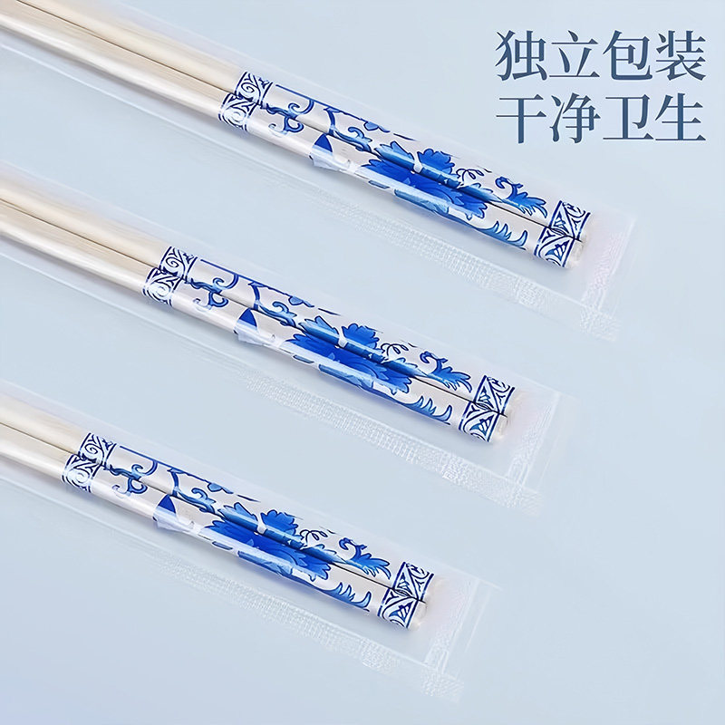青花瓷一次性高档筷子加长加粗耐用结实聚餐户外环保方便筷家用