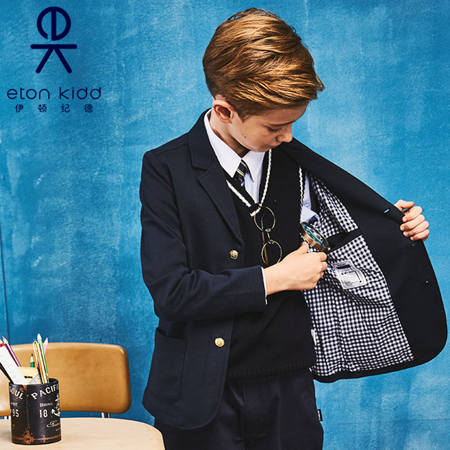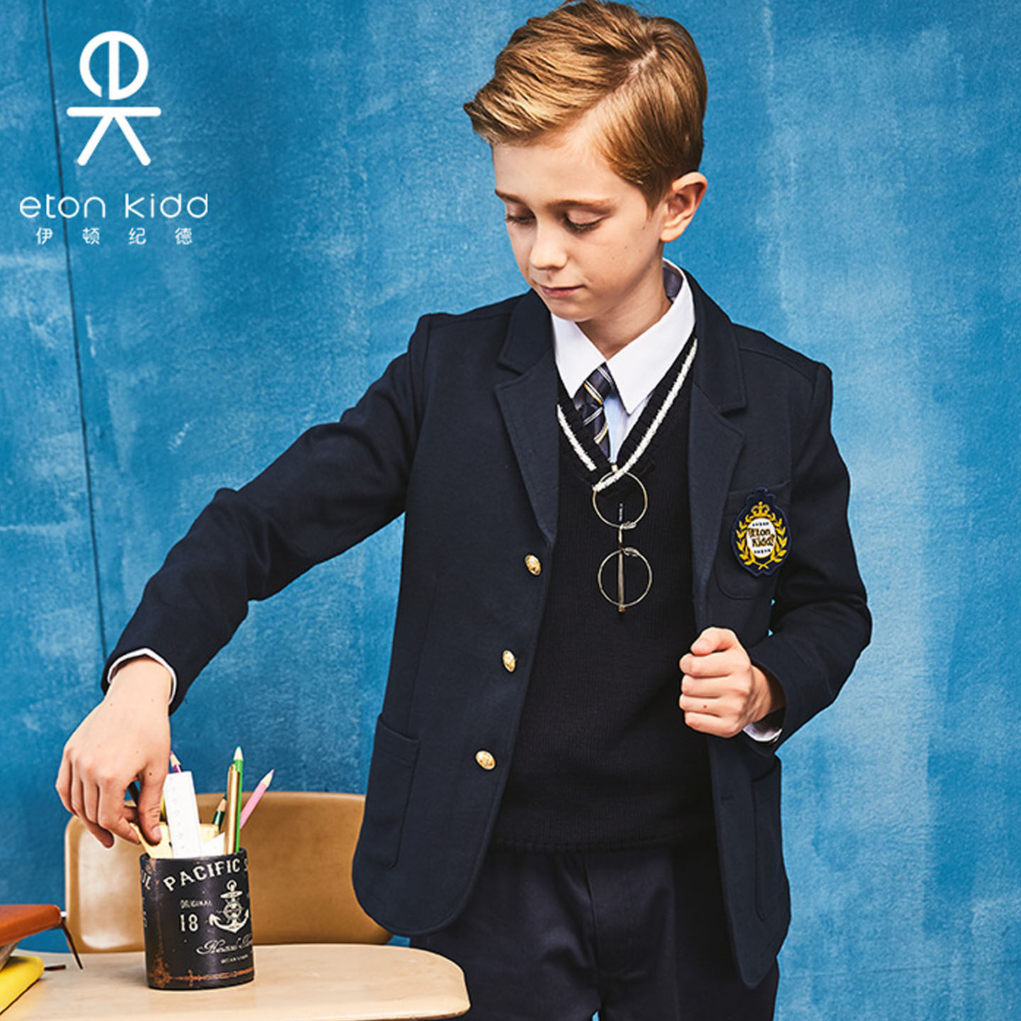 伊顿纪德儿童西装外套男童灰色礼服中小学生藏青色校服上衣15Z101