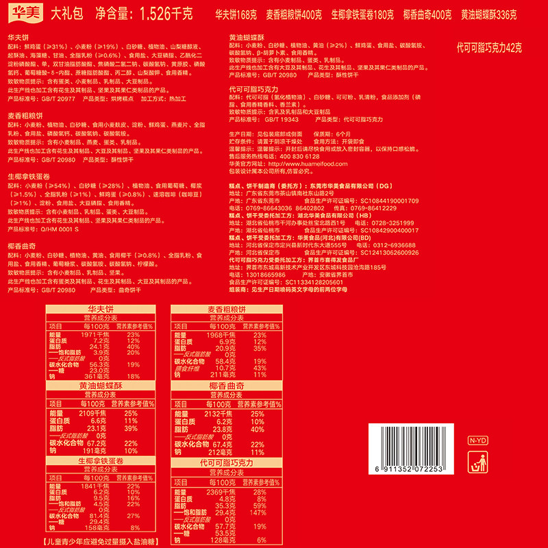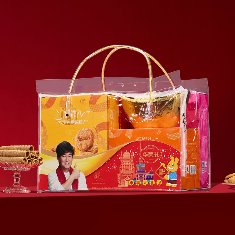 华美年货感恩礼1526g蝴蝶酥粗粮饼蛋卷曲奇饼干过节送礼团购礼盒