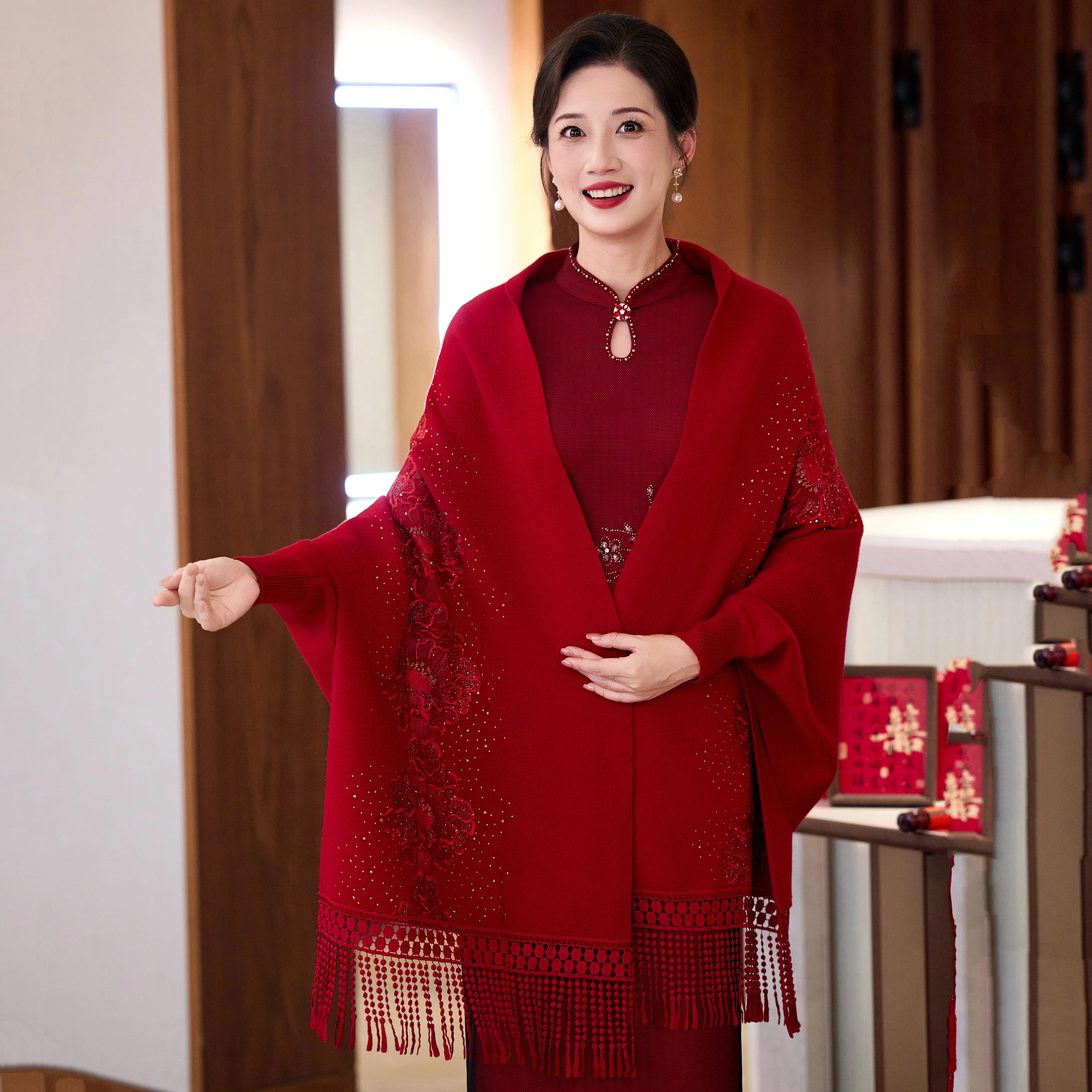 喜婆婆婚宴妈妈礼服披肩斗篷