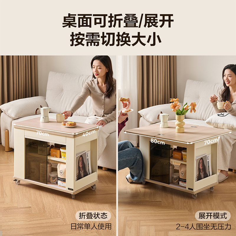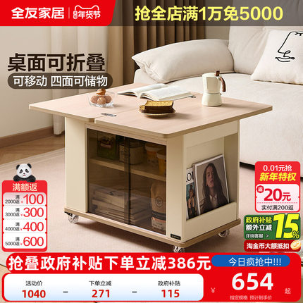 全友家居现代简约移动边几沙发阳台客厅家用2025新款折叠茶桌茶台