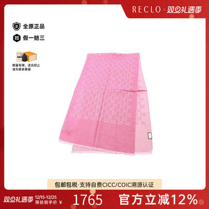 中古Gucci古驰女S级99新Stall披肩围巾羊毛围巾/丝巾粉色