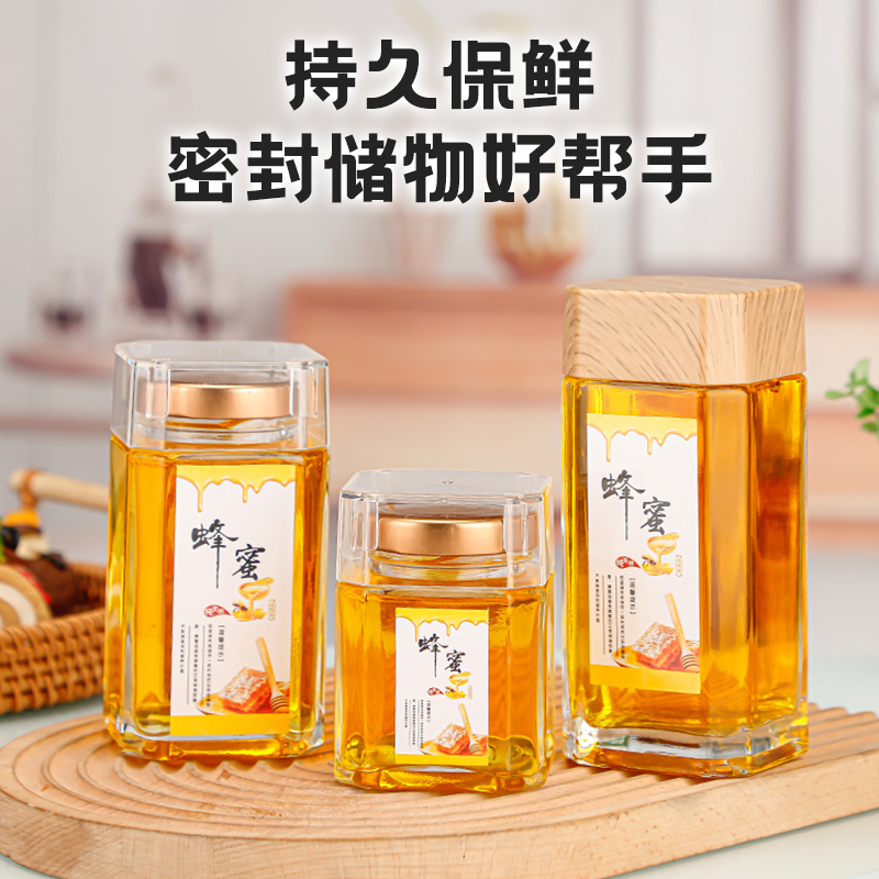 蜂蜜分装瓶透明玻璃密封罐新款加厚八角瓶家用食品级果酱瓶膏方瓶