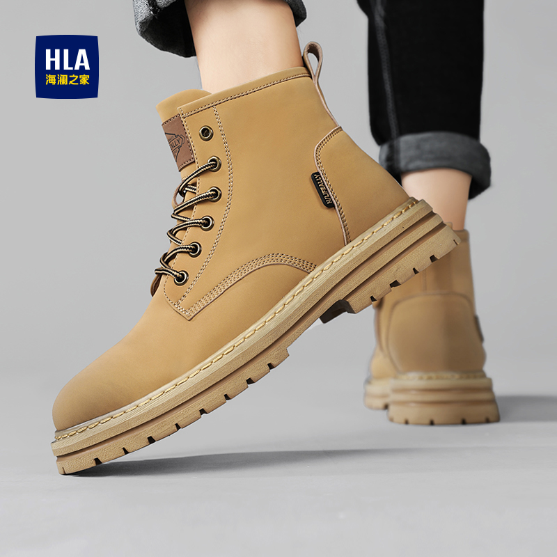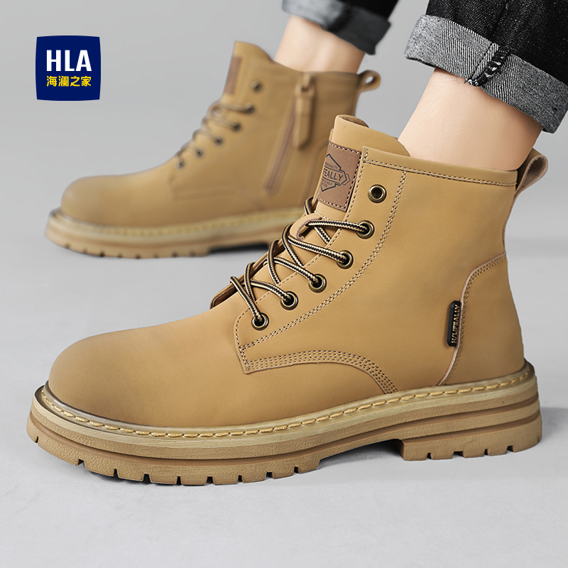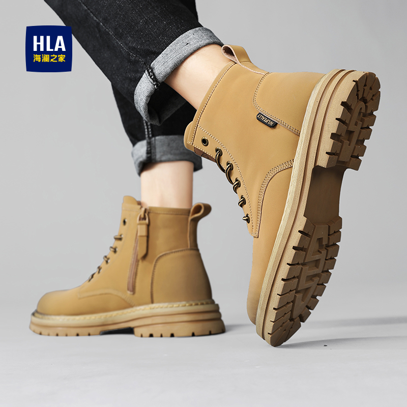 海澜之家马丁靴男款2025新款冬季加绒保暖工装男鞋英伦风大黄靴子