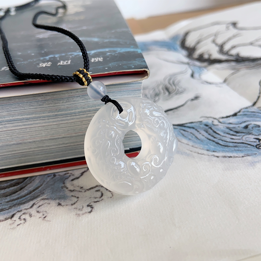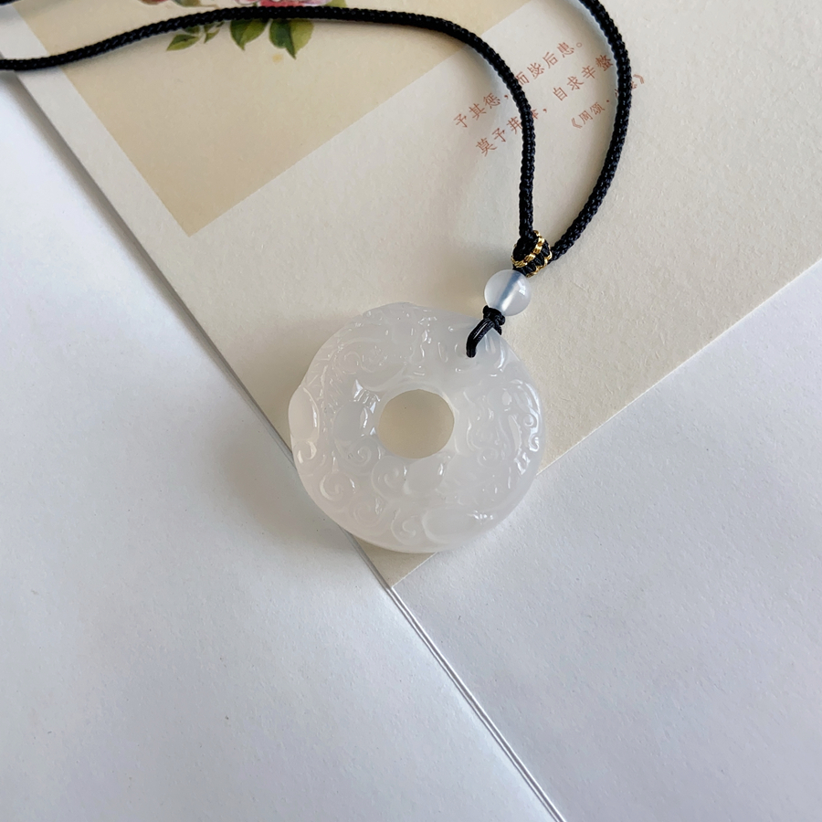 古风天然高冰白金钱貔貅吊坠项链男女双貔貅平安扣新中式配饰