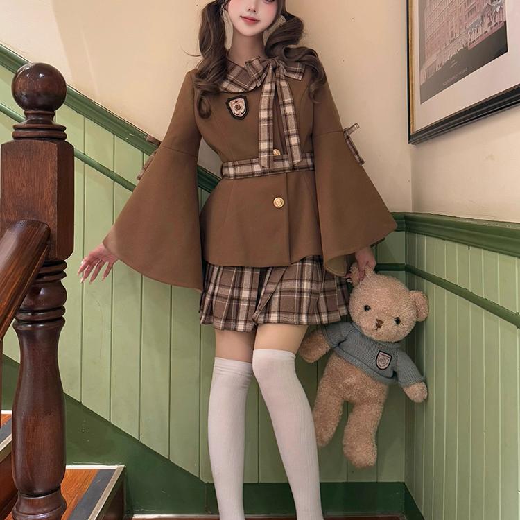 法式富家千金套装女春季2025新款高级感毛呢外套+百褶半裙两件套