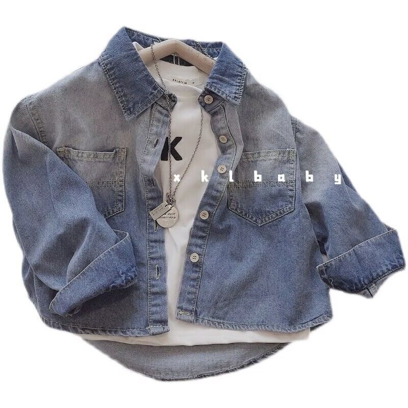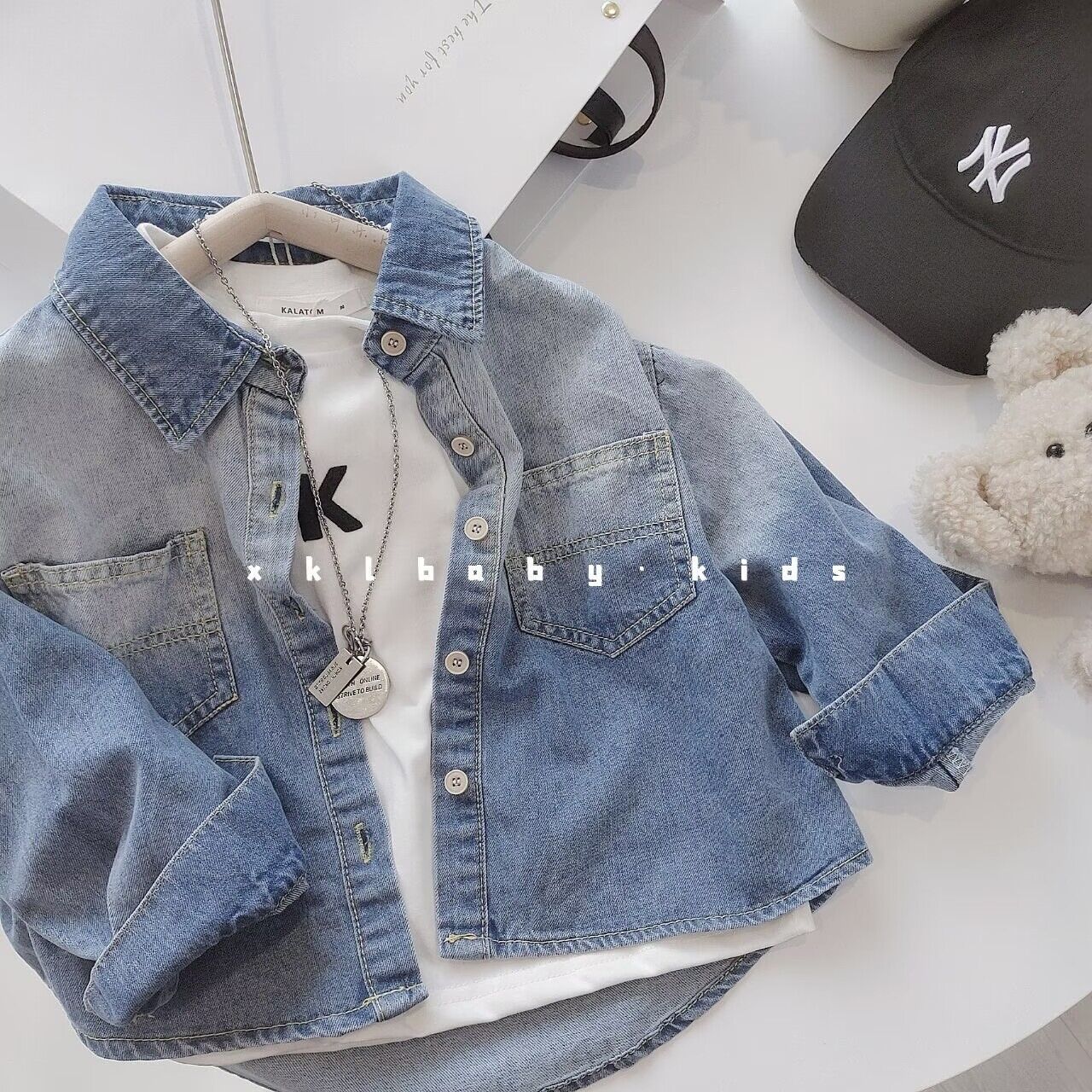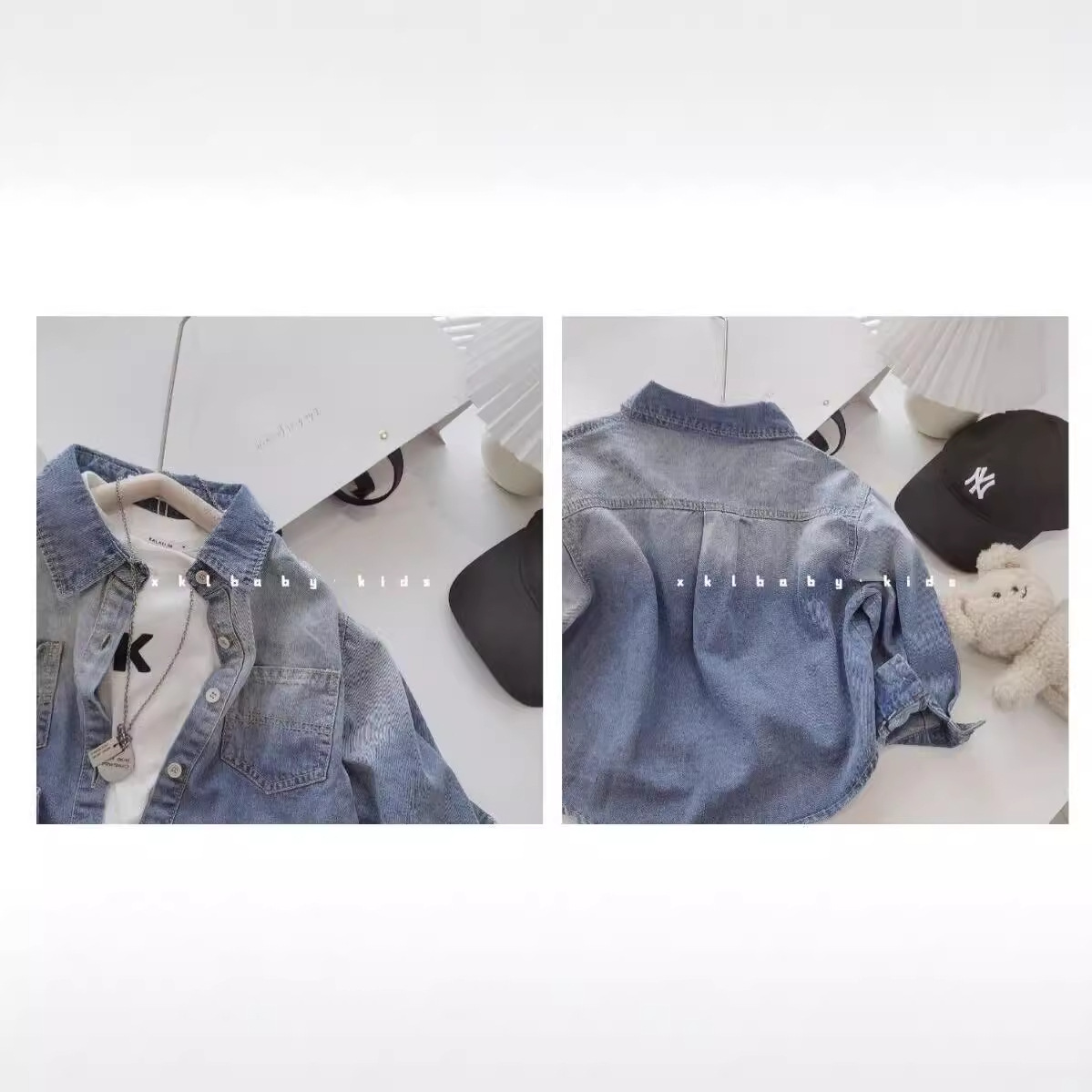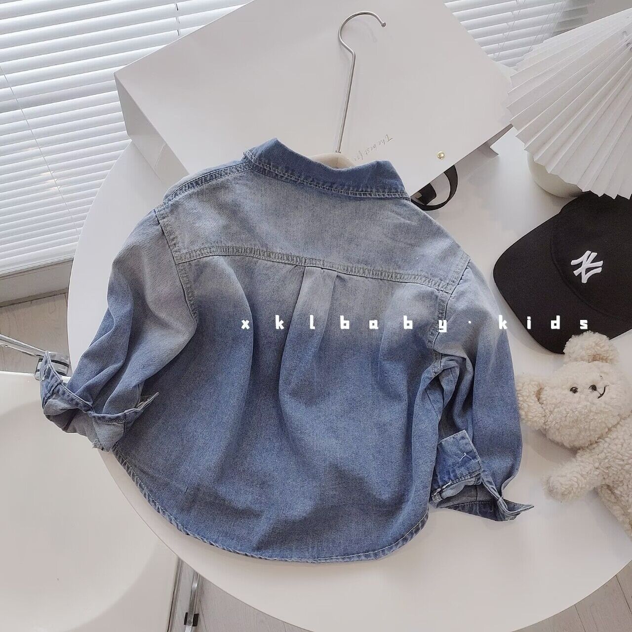 儿童外套男童春秋渐变色韩版牛仔衬衣2025新款男宝外套长袖帅气16