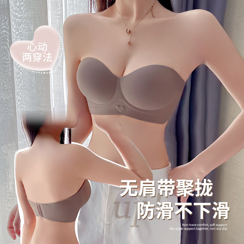 穿出圆圆胸外扩型内衣女小胸聚拢显大胸罩无痕半杯无肩带防滑文胸