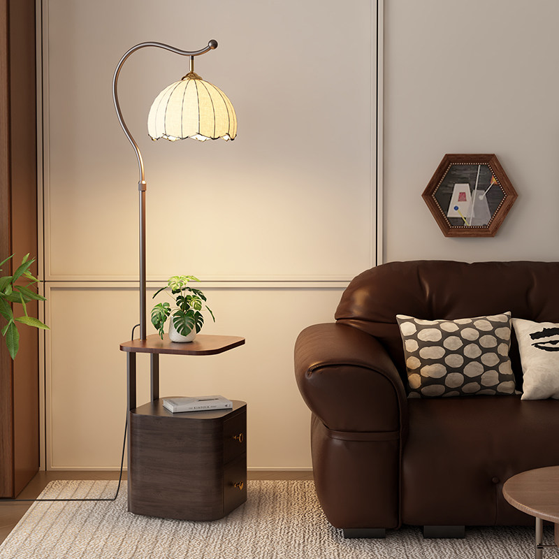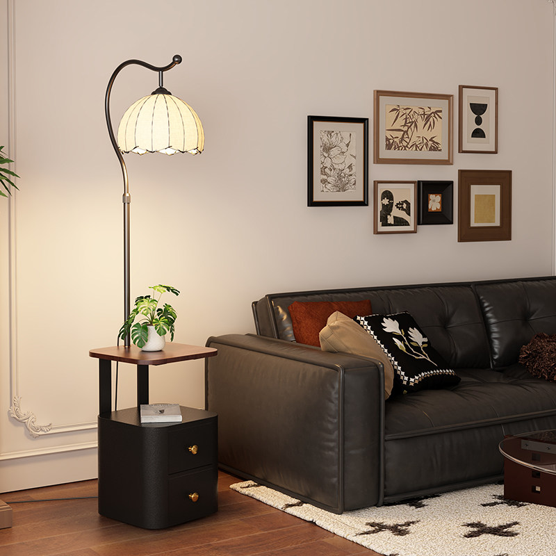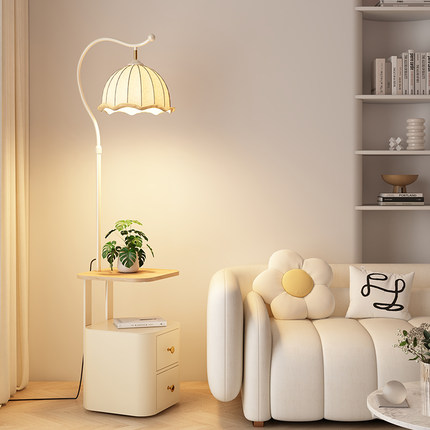 奶油风实木落地灯客厅沙发旁边茶几置物架床头柜一体卧室立式台灯