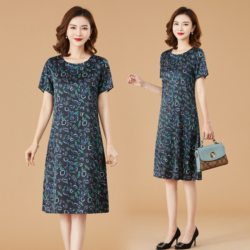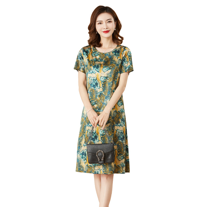 真丝印花连衣裙桑蚕丝妈妈裙子夏